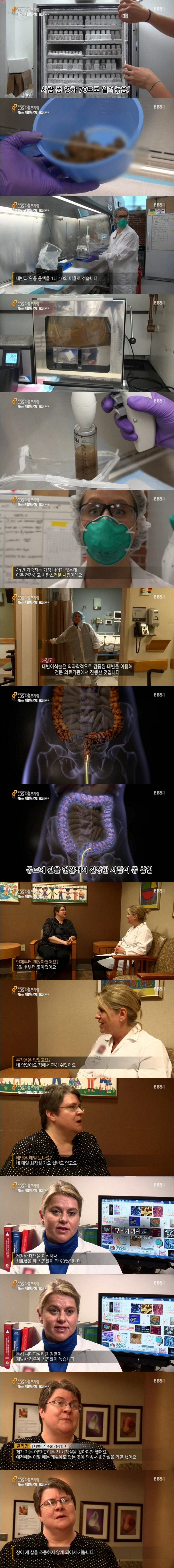 바로 이런 이유로 인해 <다큐 프라임>은 '똥'과 그 안의 '세균'에 주목하고자 한다. 30년간 크론병에 시달린 미국의 환자는 타인의 건강한 똥을 장내 이식하는 '분변 이식술'을 통해 30년간 고질적으로 시달리던 복통과 설사에서 해방되었다. 그저 남의 똥을 좀 빌렸을 뿐인데, 건강한 세균이 우글우글한 타인의 똥이 환자의 대장으로 들어가 대장 생태계를 변화시킨 것이다.