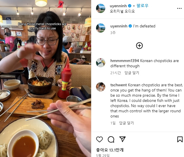 오, 정말 다행이야. 나만 한국 젓가락 쓰는게 어려웠던게 아니라니 안심되네 ㅎㅎ
