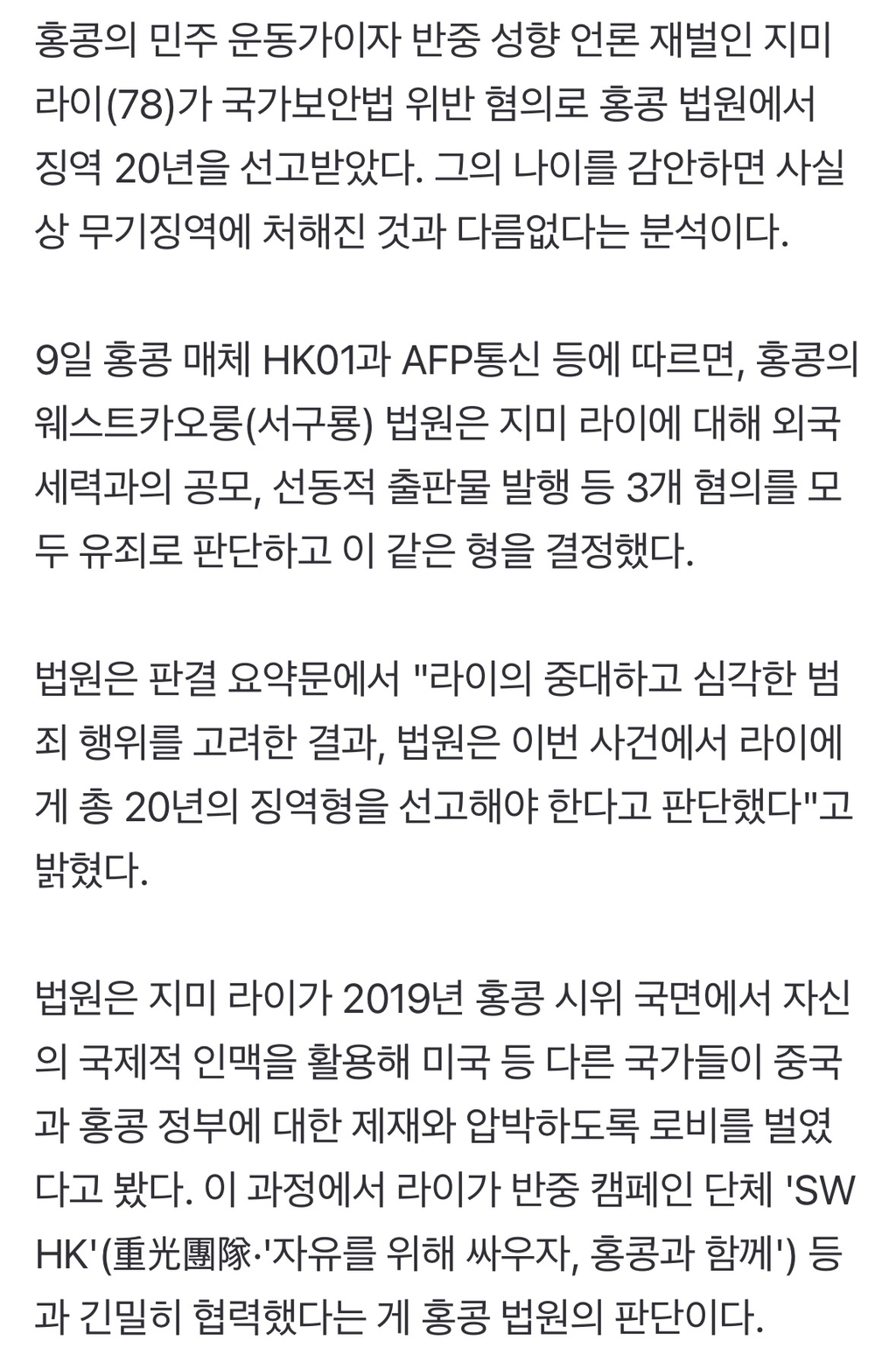 작성자Hong Konger 작성시간 26.02.15 홍콩은 중국이 완전히 민주화 싹을 잘라내는 중...작년 홍콩 대화재 때 대학생이 화재 수사와 관련해서 서명운동 했는데 바로 잡혀가고 퇴학당함