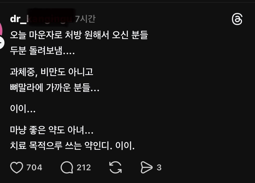 [스크랩] [흥미돋]오늘 비만약 처방 원해서 오신분들 돌려보냄 작성자flflf|작성시간26.02.15|조회수29,474 목록 댓글 52 글자크기 작게가 글자크기 크게가 출처: https://www.dmitory.com/issue/397040505이슈/유머 - 오늘 비만약 처방 원해서 오신분들 돌려보냄익명 정보 커뮤니티 사이트www.dmitory.com이와중에 남친 통해서 대신 처방 했다는 보법이 다르신분ㅎ제발 정상체중에 저런것좀 하지마 여자들아 다음검색 스크랩 원문 : *여성시대* 차분한 20대들의 알흠다운 공간 현재 게시글 추가 기능 열기 북마크 공유하기 신고 센터로 신고 댓글 댓글 52 댓글쓰기 답글쓰기 댓글 리스트 작성자차유진 | 작성시간 26.02.15 걍 하세요라~~ 요요맞는것도 본인인데 알빠아님 작성자저속멜1섭 | 작성시간 26.02.15 불법 대리처방 신고해야지ㅋㅋㅋㅋㅋ 작성자동이동이동동 | 작성시간 26.02.15 이미 부작용온것같은데.... 작성자그릴드치즈 | 작성시간 26.02.16 어차피 끊으면 바로 체중 불어날텐데 스불재지 뭐 ㅋㅋ평생 약맞고 살건가.. 작성자오리는꽥꽦 | 작성시간 26.02.16 160에 50이면 이미 뼈말라잔아.. 댓글 전체보기