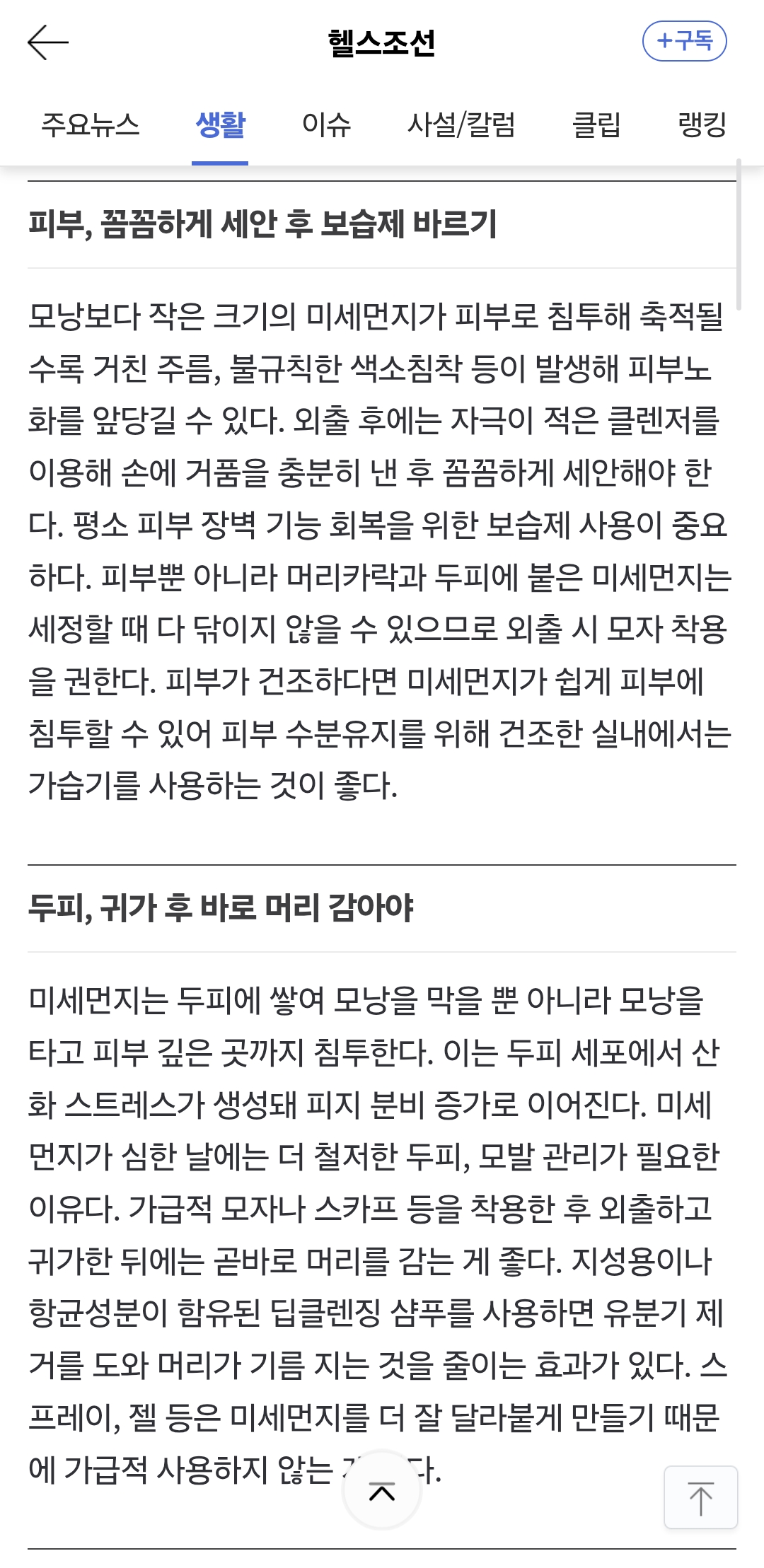 [흥미돋]미세먼지 심했으니, 오늘은 세수 ‘이렇게’ 합시다 작성자구스허니|작성시간26.02.15|조회수16,334 목록 댓글 11 글자크기 작게가 글자크기 크게가 출처: 여성시대 구스허니https://n.news.naver.com/article/346/0000103315?sid=103미세먼지 심했으니, 오늘은 세수 ‘이렇게’ 합시다날이 풀리자 전국 곳곳에서 미세먼지 ‘나쁨’ 수준을 보이고 있다. 미세먼지는 코나 기관지에서 걸러지지 않고 폐 속 깊은 곳까지 침투하며 피부에도 악영향을 끼친다. 미세먼지가 심한 날이 n.news.naver.com 다음검색 현재 게시글 추가 기능 열기 북마크 공유하기 신고 센터로 신고 댓글 댓글 11 댓글쓰기 답글쓰기 댓글 리스트 작성자발가락뜯어지겠다 | 작성시간 26.02.15 례 방금 샤워하고 이 글 읽었네요 작성자욱우지 | 작성시간 26.02.15 ㅠㅠㅠㅠ 머리감기싫어요 으헝헝 작성자슢슢 | 작성시간 26.02.15 미먼 심한 날은 반드시 머리까지 꼭 감음 ㅠㅠ 작성자수천수만개의별 | 작성시간 26.02.15 아직 누워있다네요... 작성자일단과몰입 | 작성시간 26.02.16 샤워랑 얼굴까진 어떻게 해보겠는데 퇴근하고 머리말릴 체력까진 안남아있어요.... 댓글 전체보기