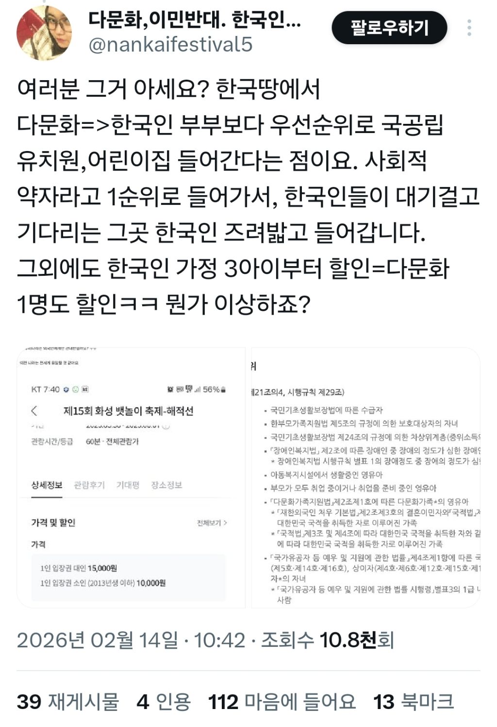 다문화 혜택 타래 들어가서 보면 생각보다 충격적이니까 한번 들어가서 읽어봐 내가 퍼온건 엄청 일부야