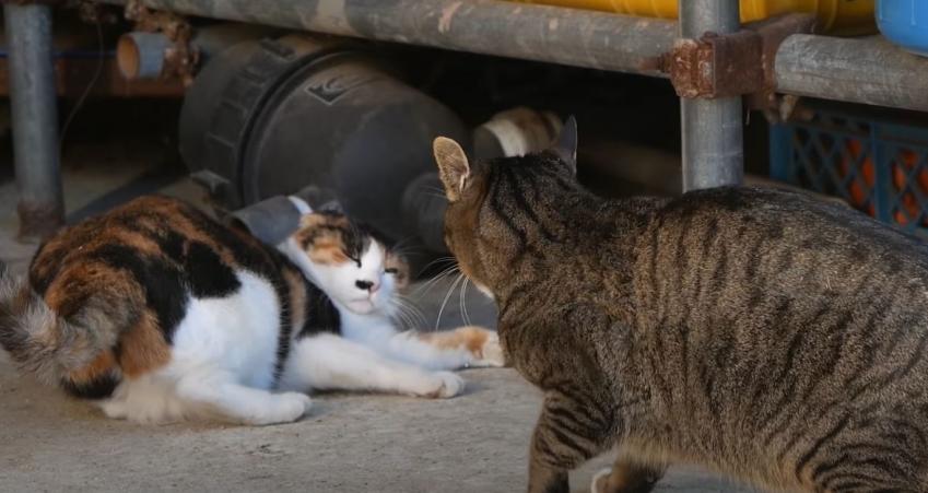 미모로 양어장을 지키는 중인 삼색