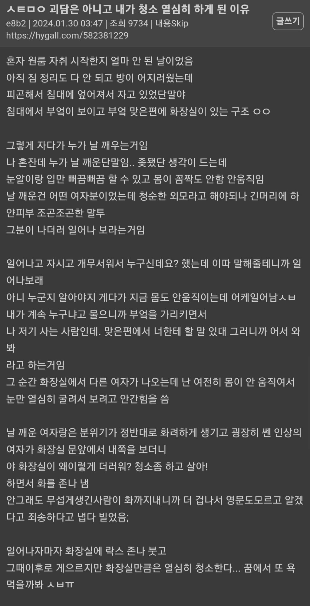 작성자lateCheckout 작성시간 26.02.16 개웃기네 아 시발 화장실 지금 존내더러운디 ㅠㅜ 혼나기전에 청소해야지