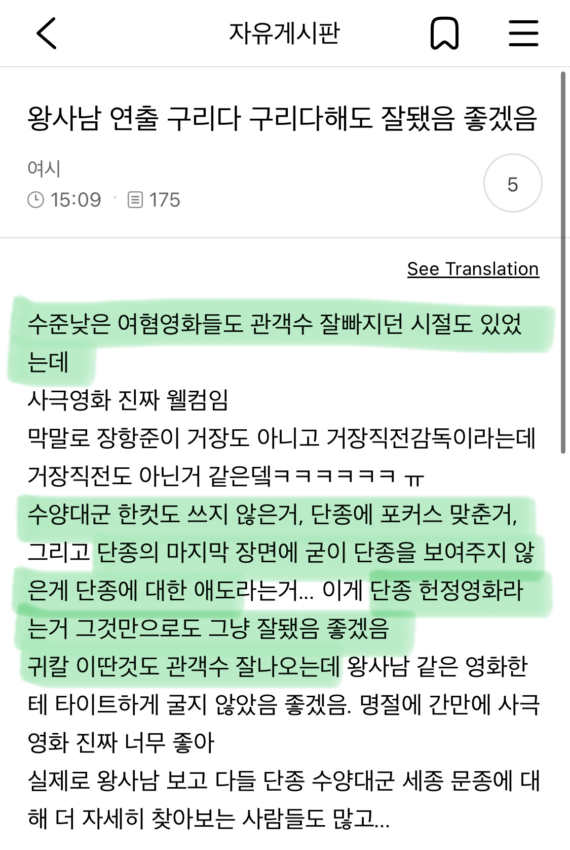 작성자곽민경한지민손예진박보영 작성시간 26.02.17 이동진유튜브에 나온거보면 장항진이 보여주고 싶은뜻이 영화에 다 나온거라서 너무좋음 공부도 많이 하고 진짜 단종을 잘 다뤄줘서 너무 감사함