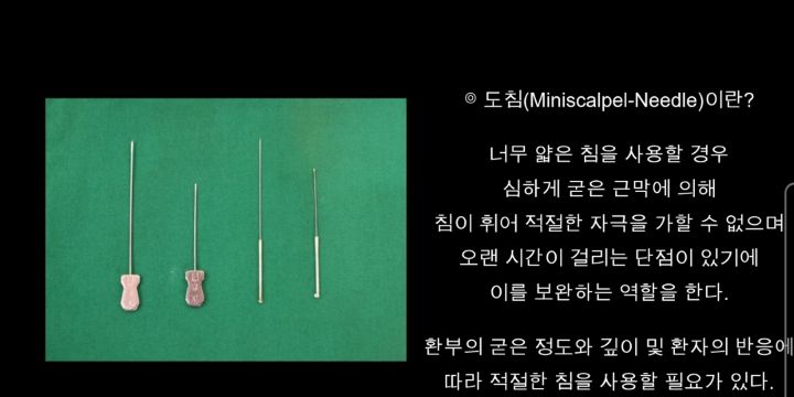 저걸 얇은 침으로 하면 딱딱한 근육때문에 휜대