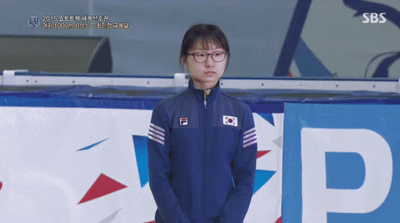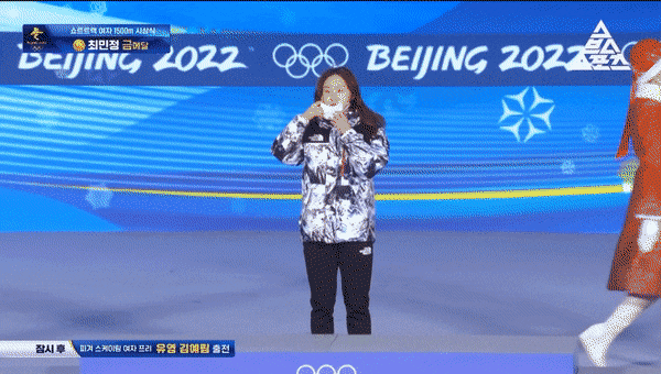 시상하기 전에 폰타나에게 마스크 벗으라고 알려주는 25살 민정이