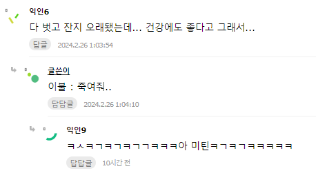 [스크랩] [흥미돋]더러움ㅈㅇ 얘들아 나체로 자지 마 제발ㅠ.jpg 작성자에어컨파워냉방으로틀어|작성시간26.02.16|조회수91,571 목록 댓글 54 글자크기 작게가 글자크기 크게가 출처 : https://www.instiz.net/name/58016777?category=1&green=1[잡담] 더러움ㅈㅇ 얘들아 나체로 자지 마 제발ㅠ - 인스티즈(instiz) 일상 카테고리팬티라도 입어 제발자다가 방귀뀔때 미세 대변 가루가 나와서 이불에 범벅된대의사 칼럼인가 인터뷰에서 봤어비위생적이니까 제발 옷 입고 자라고 제발속옷도 제발 하루에 한번은 갈아입고..www.instiz.net난 잠옷까지 다 입고 자긴 하는데..그래서 누구 말이 맞는거야 다음검색 스크랩 원문 : *여성시대* 차분한 20대들의 알흠다운 공간 현재 게시글 추가 기능 열기 북마크 공유하기 신고 센터로 신고 댓글 댓글 54 댓글쓰기 답글쓰기 댓글 리스트 작성자하으이이잉잉 | 작성시간 26.02.17 자면서 사람이 땀을 일리터 흘린다는데 나체 넘 찝찝 작성자돈진다디까스 | 작성시간 26.02.17 똥깔라 파워~ 작성자고양이딸기 | 작성시간 26.02.17 난 원피스 잠옷만 입고 자는데... ㅠㅠ 이제 빤스입곤 못자겠어 작성자배뽈록퉁퉁퉁사후르 | 작성시간 26.02.17 허걱 반드시 까먹어야겠어 작성자muso | 작성시간 26.02.17 나체로 잘버릇하면 거슬려서 뭐 못걸침 ㅜㅜ 이불이랑 침대커버 빨래자주해그래서걍.. 댓글 전체보기