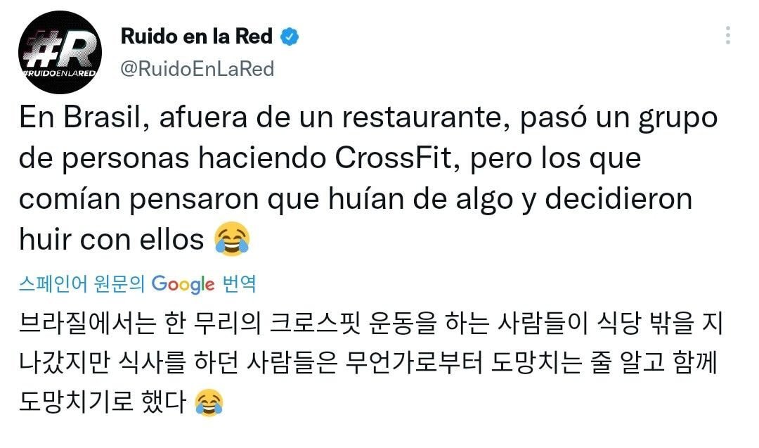 [스크랩] [흥미돋]크로스핏 선수들을 따라서 도망간 사람들 작성자순방대회|작성시간26.02.17|조회수46,920 목록 댓글 12 글자크기 작게가 글자크기 크게가 출처 : 여성시대 술래키키https://www.dogdrip.net/434207368식당주인 오열 다음검색 스크랩 원문 : *여성시대* 차분한 20대들의 알흠다운 공간 현재 게시글 추가 기능 열기 북마크 공유하기 신고 센터로 신고 댓글 댓글 12 댓글쓰기 답글쓰기 댓글 리스트 작성자갓차 | 작성시간 26.02.17 저기는 총들고 단체로 쫓아와서 강도짓하기땜에 (안타깝게도 흔함) 누가 뛰기 시작하면 걍 같이 뛰어야됨 답댓글 작성자ASM R | 작성시간 26.02.17 헐 글쿤 작성자안국역 | 작성시간 26.02.17 환장하겠다 진짴ㅋㅋㅋㅋ 작성자딴콩버터 | 작성시간 26.02.17 ㅋㅋㅋㅋ ㅁㅊ 어케 작성자초연록 | 작성시간 26.02.17 도심에서 떼로 뛰어댕기지 말라고ㅠㅠ 댓글 전체보기