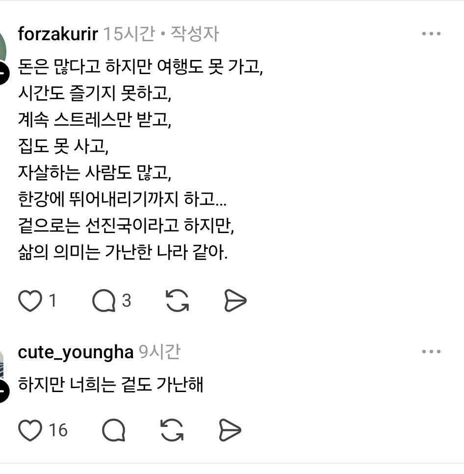 [스크랩] [흥미돋]스레드 동남아 작성자하리보)|작성시간26.02.17|조회수32,910 목록 댓글 84 글자크기 작게가 글자크기 크게가 ㅋㅋㅋㅋㅋㅋ 다음검색 스크랩 원문 : *여성시대* 차분한 20대들의 알흠다운 공간 현재 게시글 추가 기능 열기 북마크 공유하기 신고 센터로 신고 댓글 댓글 84 댓글쓰기 답글쓰기 댓글 리스트 작성자귀뚜라미귀뚜라미 | 작성시간 26.02.17 생각해보니까 자살률 낮은거 신기하긴하다.. 작성자두릅티김 | 작성시간 26.02.17 한국인한테 키보드배틀뜨다니 ㄷㄷ 작성자당신고앵이뚱쭝해요 | 작성시간 26.02.18 겉도 가난해 ㅋㅋㅋㅋㅅㅂㅋㅋㅋㅋㅋㅋㅋㅋㅋㅋㅋㅋㅋㅋ 작성자라라룰하 | 작성시간 26.02.18 ㅋㅋㅋㅋㅋㅋㅋㅋㅋㅋㅋㅋㅋㅋㅋㅋㅋㅋㅋㅋㅋ쿠ㅜㅜ아 작성자슬픔아안뇨옹 | 작성시간 26.02.19 ㅋㅋㅋㅋㅅㅂㅋㅋㅋㅋㅋ 댓글 전체보기