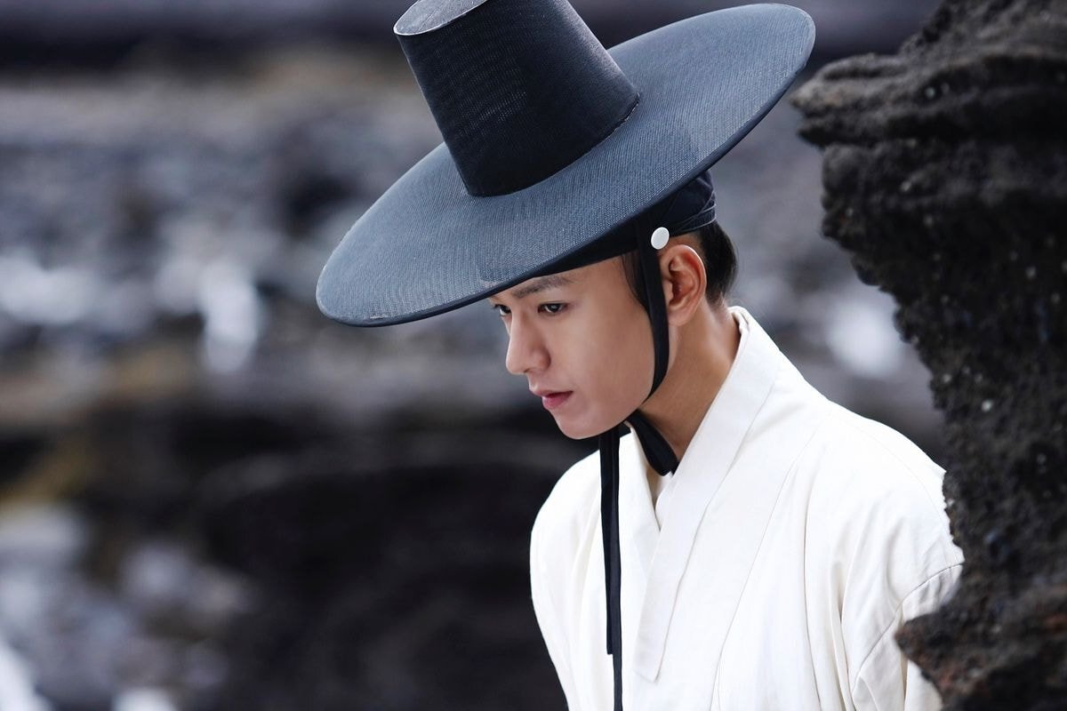 갓끈과 주렁주렁 달린 장식 갓은 얼굴에 시선이 갈 수 밖에 없게 만듬 특히 갓끈이 얼굴 골격 라인을 다 그려주는 수준