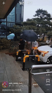 우산은 매니저가 들게함.(+자동문 버튼도 매니저가 눌러줌)ㄴ 출입증 찍는 거라네요