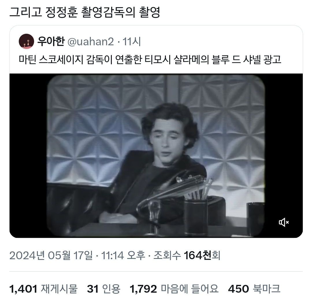 마틴 스코세이지 감독이 연출한 티모시 샬라메의 블루 드 샤넬 광고pic.twitter.com/Pvfs0qcC6J