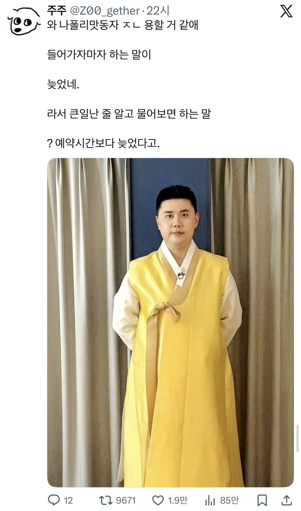 [흥미돋]와 나폴리맛피자 ㅈㄴ 용할 거 같애 작성자cold brew|작성시간26.02.17|조회수23,802 목록 댓글 38 글자크기 작게가 글자크기 크게가 출처: https://x.com/z00_gether/status/2023341314386124894?s=46&t=RpmwtRdi1Jrsye6BY1_c7A나폴리 맛동자늦었네. 다음검색 현재 게시글 추가 기능 열기 북마크 공유하기 신고 센터로 신고 댓글 댓글 38 댓글쓰기 답글쓰기 댓글 리스트 작성자은평구박마이콜씨 | 작성시간 26.02.17 방울 개찰떡일듯 작성자돼지헬리콥터 | 작성시간 26.02.17 아니 뭔 ㅋㅋㅋ 쿠키런 쿠키도 아닌데 나폴리맛동자 뭐냐고 ㅠ 작성자짱워녕 | 작성시간 26.02.17 맛동잨ㅋㅋ 작성자뭄새 | 작성시간 26.02.17 근데 진짜 무당집가면 그림그려져있는 동자신? 머 그런애같음 작성자원형적사고 | 작성시간 26.02.18 ㅋㅋㅋㅋㅋㅋㅋㅋㅋㅋㅋㅋㅋㅋ맛동자미친 ㅠㅠㅠ 댓글 전체보기