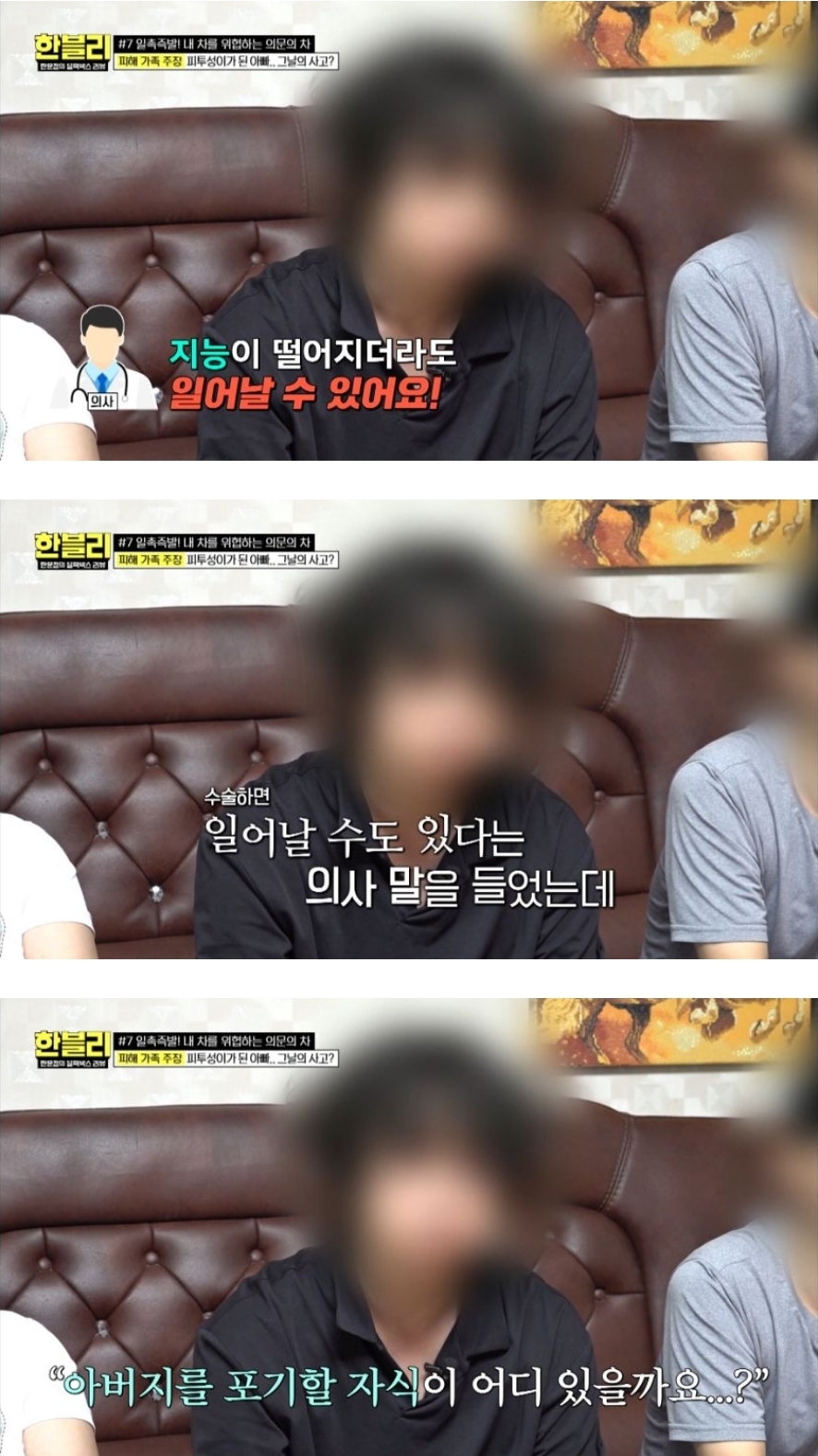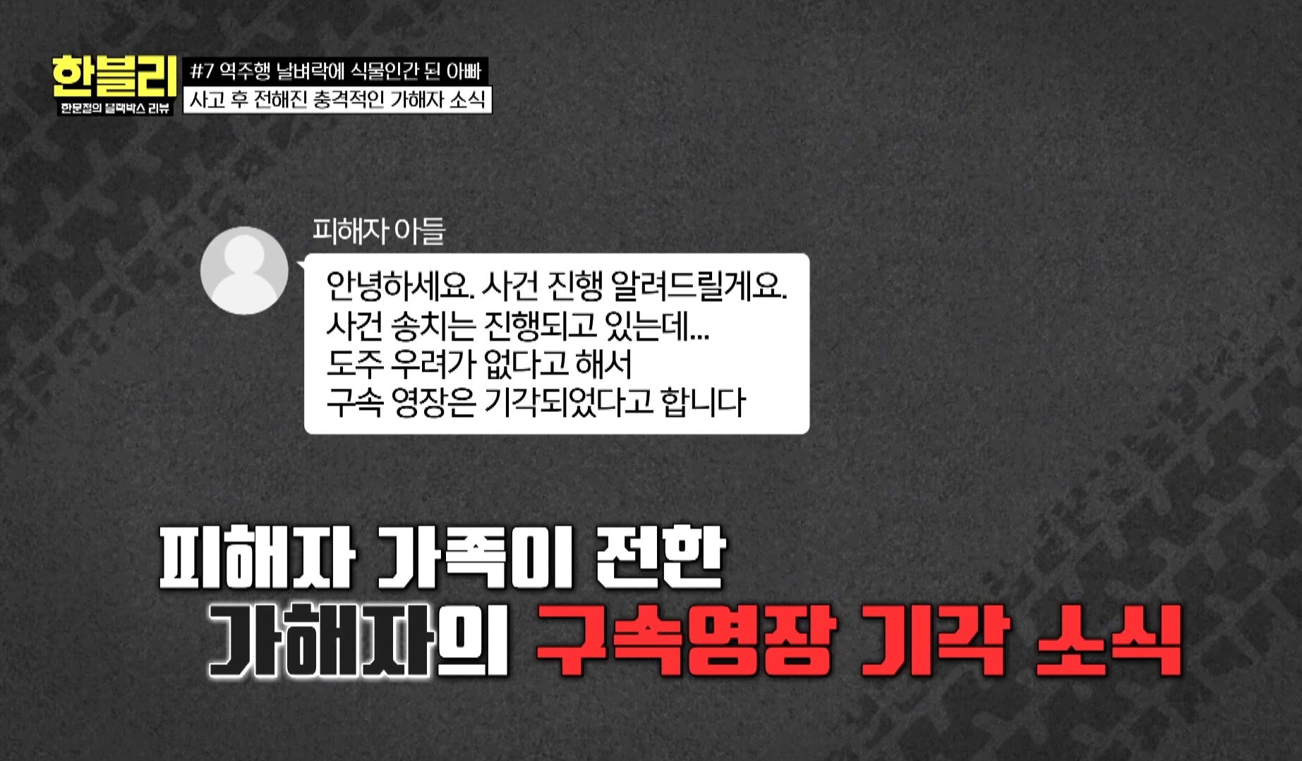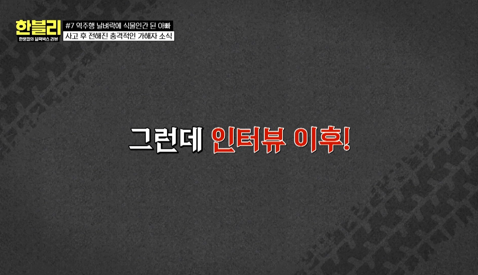 [스크랩] [칵.cxxx]한블리) 중앙분리대 넘어서 악셀밟고 날아온 차량,, 빗길사고인줄 알았는데 작성자jahexjw|작성시간26.02.17|조회수33,629 목록 댓글 81 글자크기 작게가 글자크기 크게가 출처: 여성시대 콩송편 안티아침 7시 12분임반대편에서 차가 운전석 쪽으로 날아옴 지금 상태에서는 회복이 된다 하셔도자가 호흡을 할 수 있는 정도라고 하심,,기사 찾아보니까 2025년 9월로 뜸,,피해자 가족 주장) 충돌 직전까지 풀 악셀을 밟은듯참고로 가해자는,,음주운전 처벌 너무 약함,, 다음검색 스크랩 원문 : *여성시대* 차분한 20대들의 알흠다운 공간 현재 게시글 추가 기능 열기 북마크 공유하기 신고 센터로 신고 댓글 댓글 81 댓글쓰기 답글쓰기 댓글 리스트 작성자콘테 | 작성시간 26.02.18 그냥 찾아가서 죽이자 작성자스칸디나모스 | 작성시간 26.02.18 한 가정을 박살을 냈는데 ㅅㅂ 작성자핑핑구구구 | 작성시간 26.02.18 법 존나 물렁하네.. 가해자한테 똑같이 음주운전으로 죽이고싶노 작성자누ㅔ눼 | 작성시간 26.02.18 개새끼야 똑같이 니 부모가 니가 네 자식이 음주운전 사고로 고통 받아보길 바란다 꼭 작성자푸딩망곰 | 작성시간 26.02.18 아 너무 화난다... 댓글 전체보기