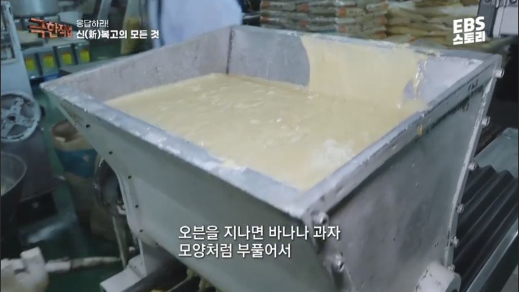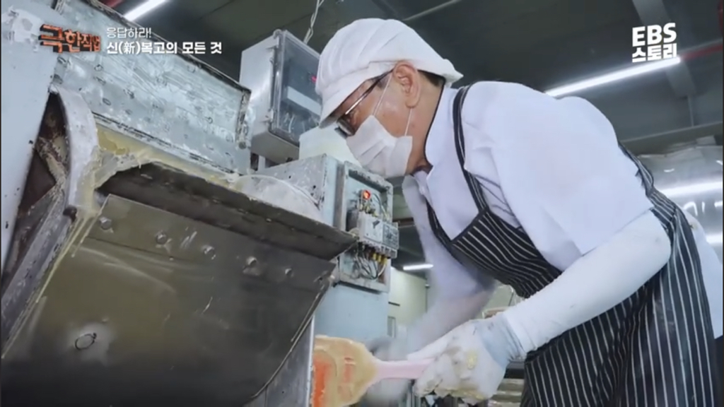 그 날 습도에 따라 묽기가 다르기 때문에 숙련된 작업자가 반죽 작업을 한대