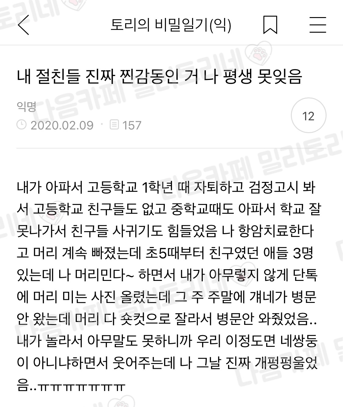 [스크랩] [흥미돋]내 절친들 진짜 찐 감동인 거 나 평생 못 잊음 작성자딩댕동유치원|작성시간26.02.17|조회수105,537 목록 댓글 30 글자크기 작게가 글자크기 크게가 출처: https://m.cafe.daum.net/baemilytory/91cd/297496?svc=cafeapp내 절친들 진짜 찐 감동인 거 나 평생 못 잊음밀리토리네 [신문보는 밀리] △ 클릭 시 이동 △m.cafe.daum.net 다음검색 스크랩 원문 : *여성시대* 차분한 20대들의 알흠다운 공간 현재 게시글 추가 기능 열기 북마크 공유하기 신고 센터로 신고 댓글 댓글 30 댓글쓰기 답글쓰기 댓글 리스트 작성자아라비아따 따따따 | 작성시간 26.02.18 넷 다 아픈 일 없고 그저 행복만하길 작성자커스텀 | 작성시간 26.02.18 ㅜ 미친 감동 작성자랑해사 | 작성시간 26.02.18 ㅜㅜㅜㅜㅜ사랑이야 작성자메이첼 | 작성시간 26.02.18 ㅜㅜㅜㅜㅜㅜ 작성자앨리스는바로나 | 작성시간 26.02.24 찐친이네..ㅠ 댓글 전체보기