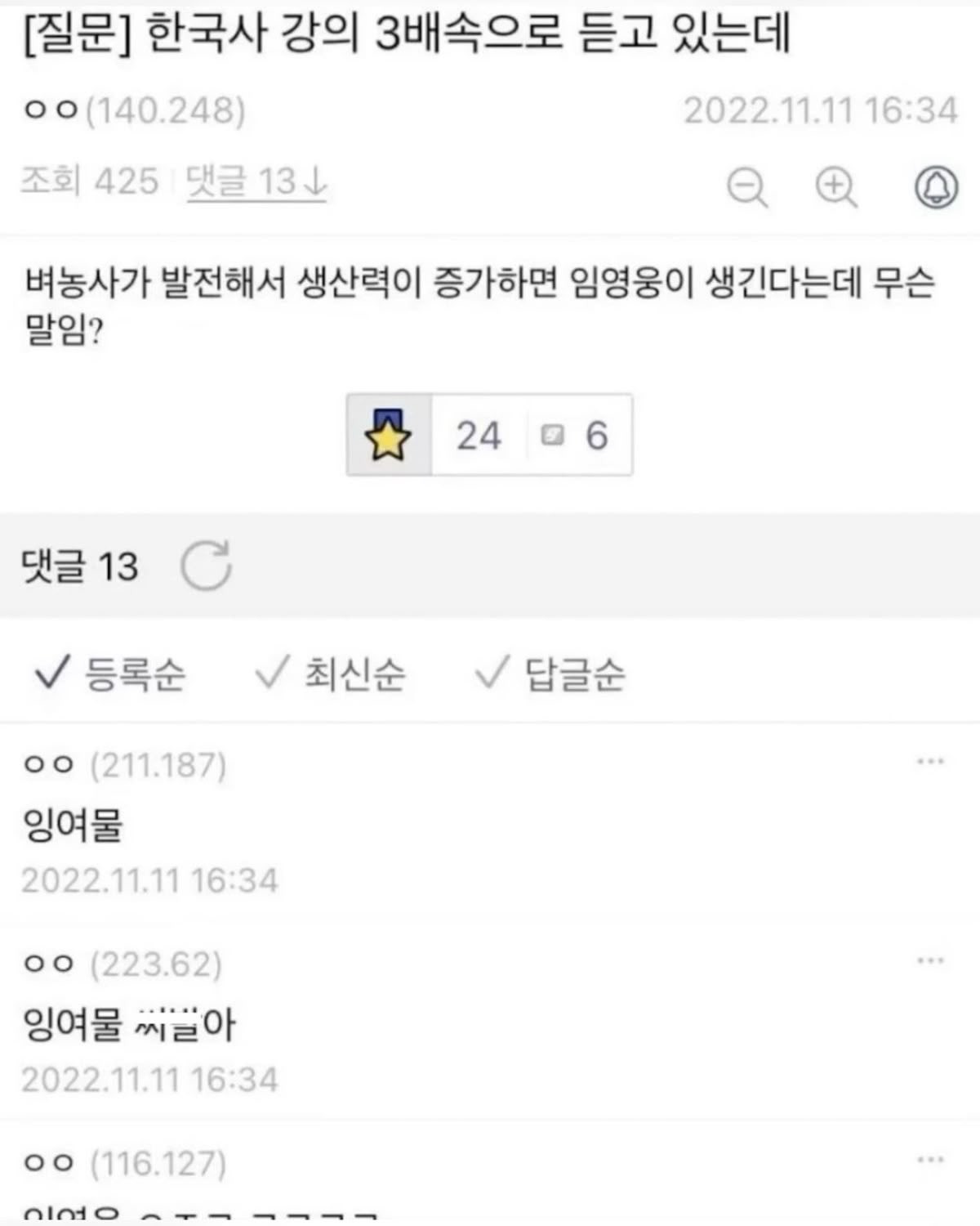 [배꼽의행방]한국사 강의 3배속으로 듣고있는데 이게 뭔 말임? 작성자야이개라스가|작성시간26.02.17|조회수56,147 목록 댓글 16 글자크기 작게가 글자크기 크게가 출처: 여성시대 야이개라스가 다음검색 현재 게시글 추가 기능 열기 북마크 공유하기 신고 센터로 신고 댓글 댓글 16 댓글쓰기 답글쓰기 댓글 리스트 작성자공정하다는착각 | 작성시간 26.02.18 ㅅㅂ ㅋㅋㅋㅋ 장난하세욬ㅋㅋㅋㅋ 작성자두바이안쫀득쿠키 | 작성시간 26.02.18 벼요 작성자치리치리뺑 | 작성시간 26.02.18 ㅋㅋㅋ개욱갸 작성자퇴사. | 작성시간 26.02.19 아직 신석기 공부중인갑네 ㅠㅠㅋㅋ 작성자쿵푸팬T | 작성시간 26.02.21 아 ㅋㅋㅋㅋㅋㅋㅋㅋㅋㅋ 댓글 전체보기