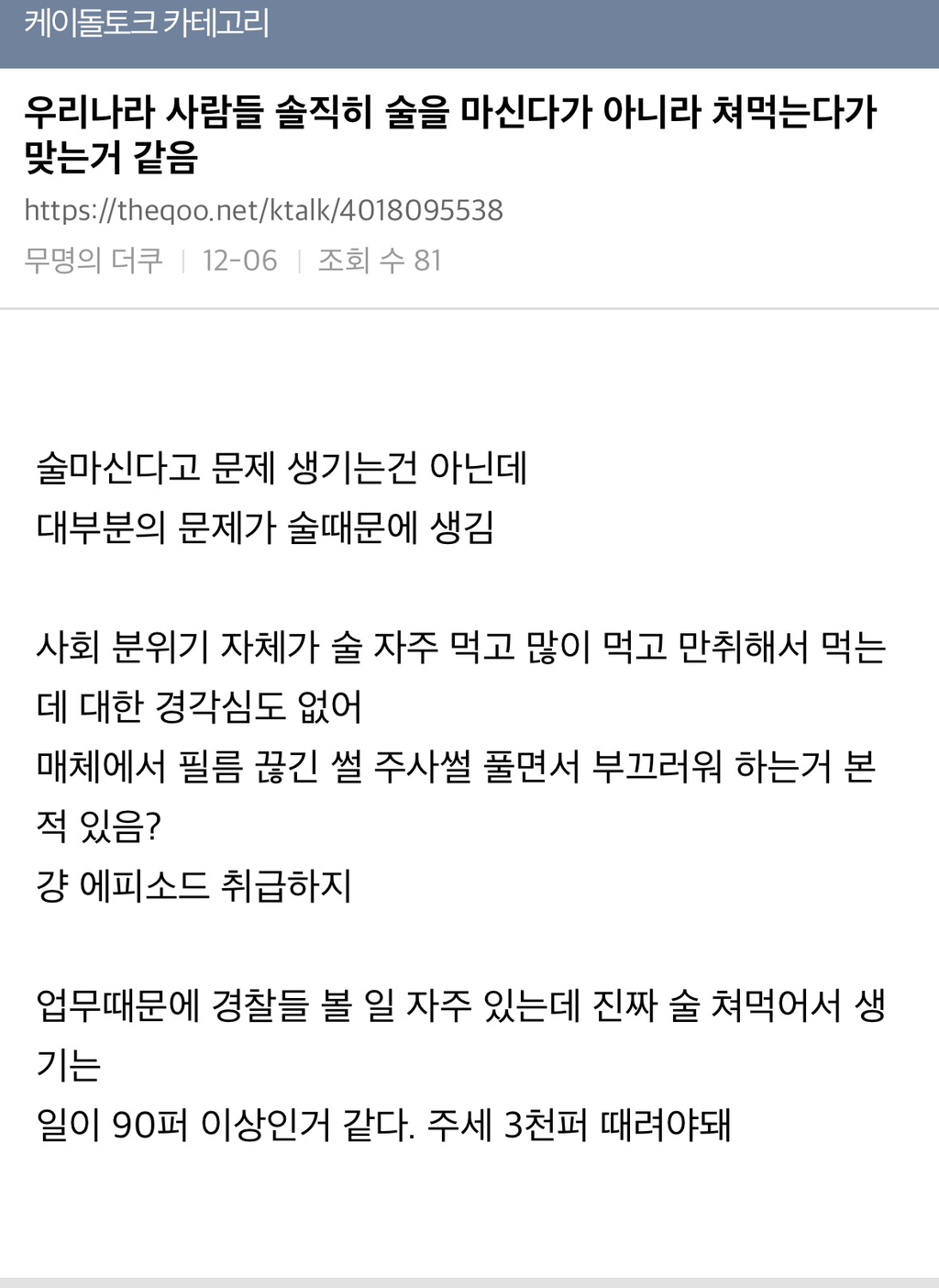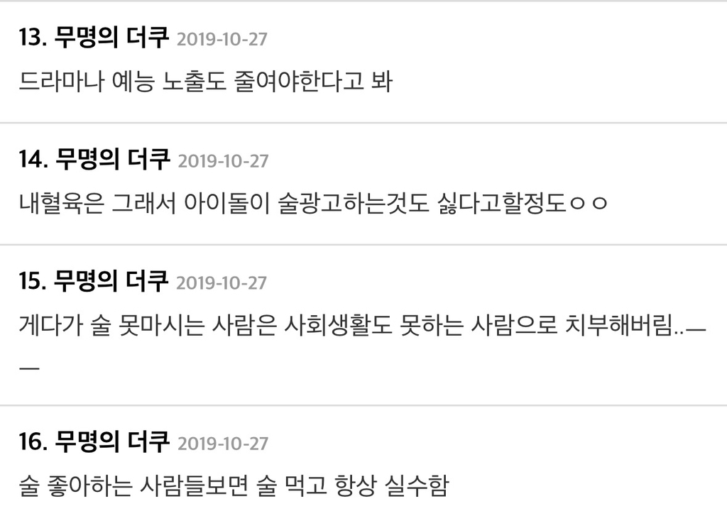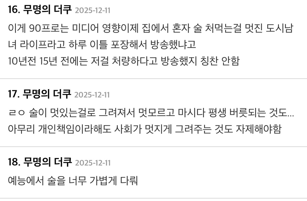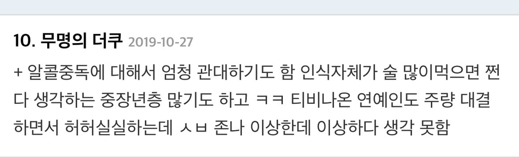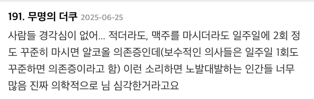 작성자마라탕수육개장 작성시간 26.02.18 난 우리나라뿐만 아니라 전 세계 모두 문제라고 생각함.. 술을 진짜 너무 많이 마셔 ㅡㅡ