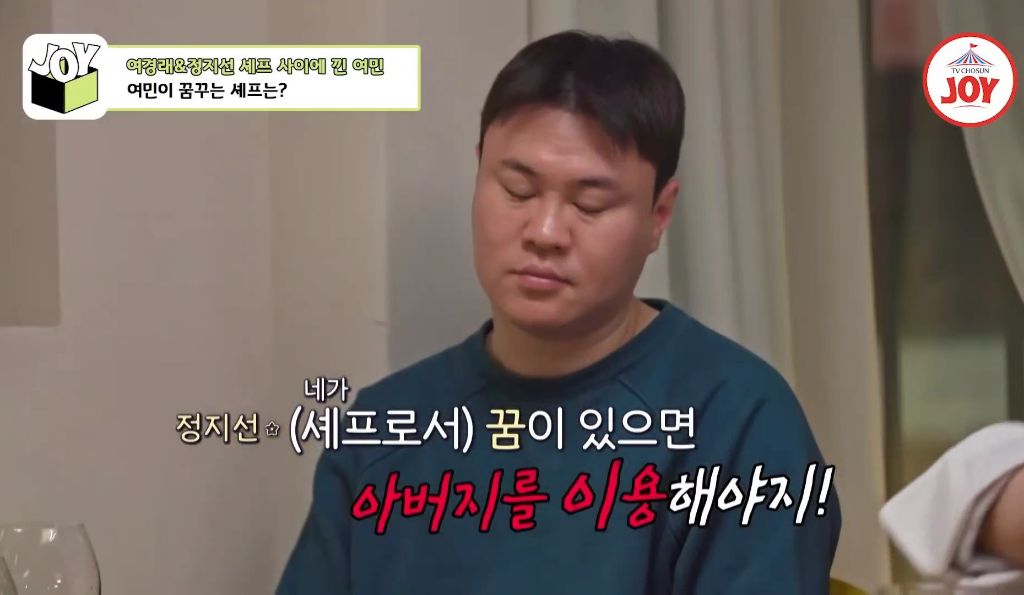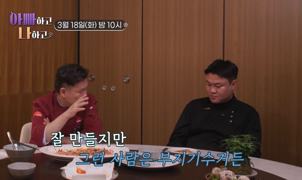 작성자핏불이 작성시간 26.02.18 여경래 쉐프님이 유명한게 뭐냐고 지선 쉐프가 물아볼때 저 아들 대답도 못함 …걍 가만히 앉아서 떠먹여주길 원하던데 의지가 없음 …