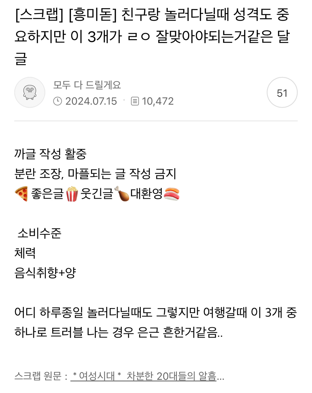글고 먹고싶은게 너무 많고 중요하게 생각하는 친구랑 안맞드라 -