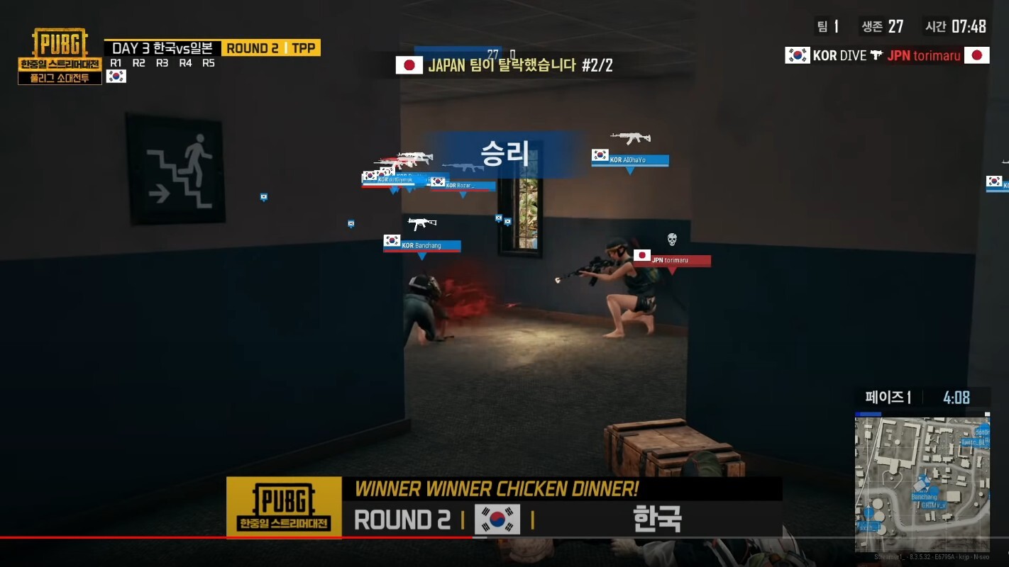 그리고 3분도 안돼서 일본인 13명 아웃당함 한국은 1명 아웃