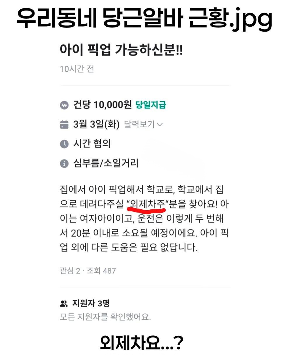 작성자도토리둥지 작성시간 26.02.19 본인 집차가 외제차가 아니니까 애 기눌릴까봐 그러나본데 요즘세상에 모르는 사람한테 애를 저렇게 맡기는게 너무 불안하지 않음? 진짜 하나는 알고 둘은 모르네..