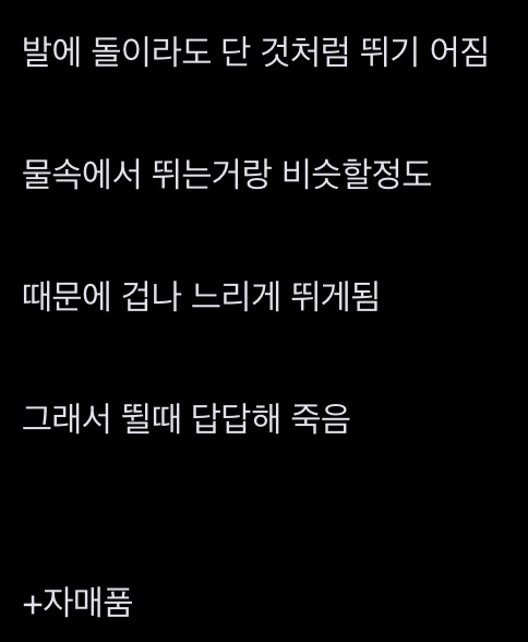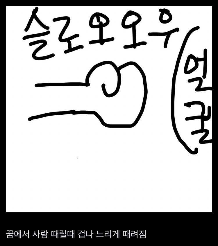 때리는건 잘 못느껴봣는데 방금 뛰는꿈꾸고나서 저런느낌이었ㅋㅋㅋㅋㅋ 50미터를 10분만에 뜀… 진짜 발목 누가 붙잡고있는거처럼 토옹-….토옹-…..요느낌