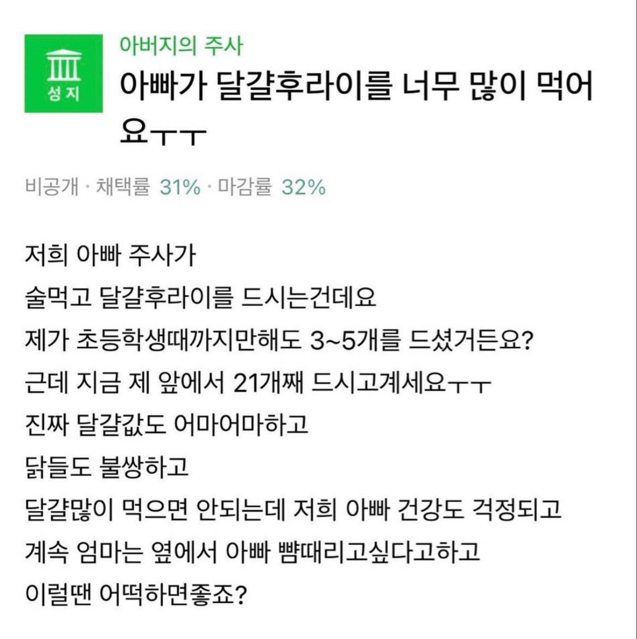 [흥미돋]아빠가 달걀후라이를 너무 많이 먹어요 작성자세 레나|작성시간26.02.18|조회수79,856 목록 댓글 38 글자크기 작게가 글자크기 크게가 출처: https://www.dmitory.com/issue/400714246 다음검색 현재 게시글 추가 기능 열기 북마크 공유하기 신고 센터로 신고 댓글 댓글 38 댓글쓰기 답글쓰기 댓글 리스트 작성자born in blue_ | 작성시간 26.02.19 혹시 성함이 노라정? 작성자아흐레 | 작성시간 26.02.19 아니 안비리냐곸ㅋㅋㅋㅋㅋㅋㅋㅋㅋㅋㅋㅋㅋㅋ 작성자연봉올려이직성공 | 작성시간 26.02.19 ㅋㅋㅋㅋㅋㅋㅋㅋㅋㅋㅋㅋㅋㅋㅋ 작성자오예신나아싸대박 | 작성시간 26.02.19 방구냄새 장난아니겟네^^... 작성자수원수원수원 | 작성시간 26.02.19 나도 들기름 후라이해서 7개 먹은적 있어.. 댓글 전체보기