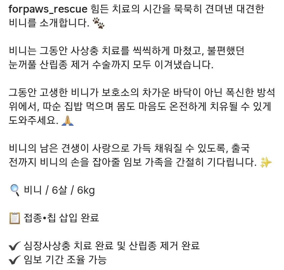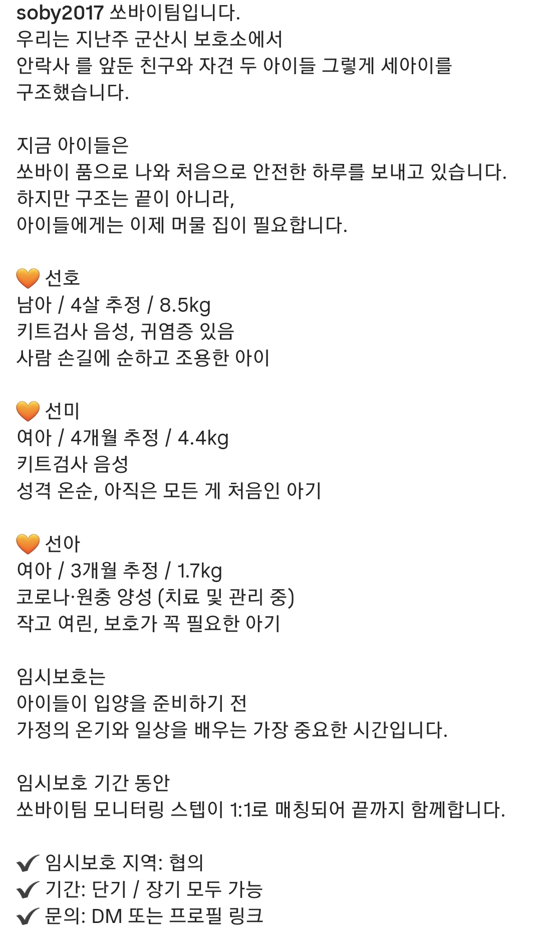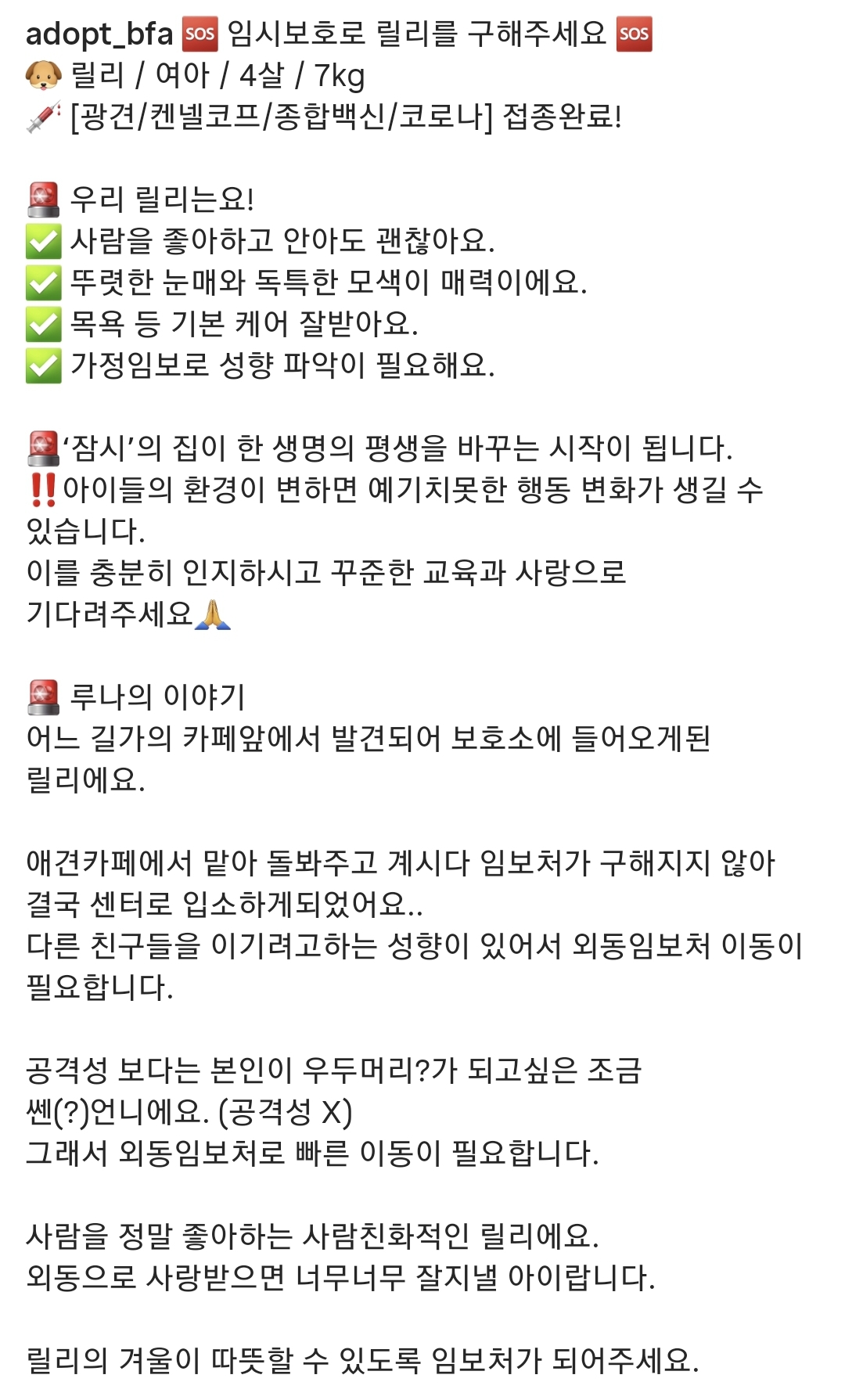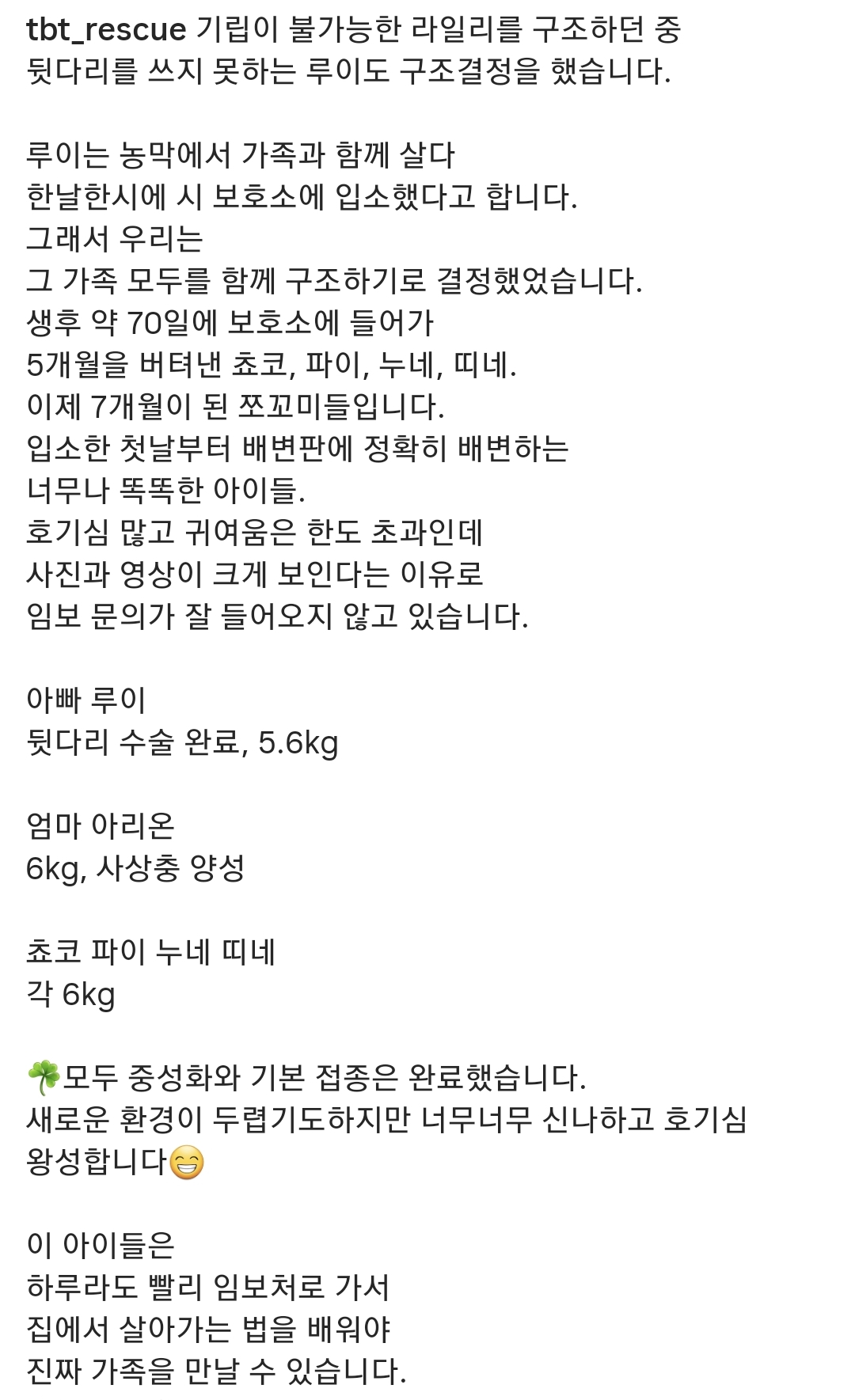 작성자깔리 작성시간 26.02.20 이런 보호소에서 임보 후 입양하려면 비용 같은 거 내야해??