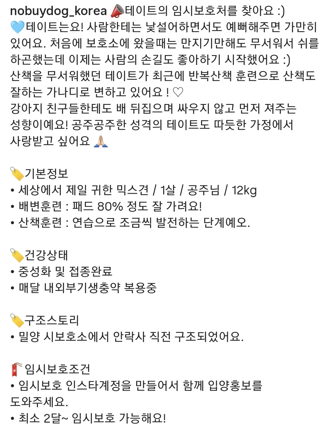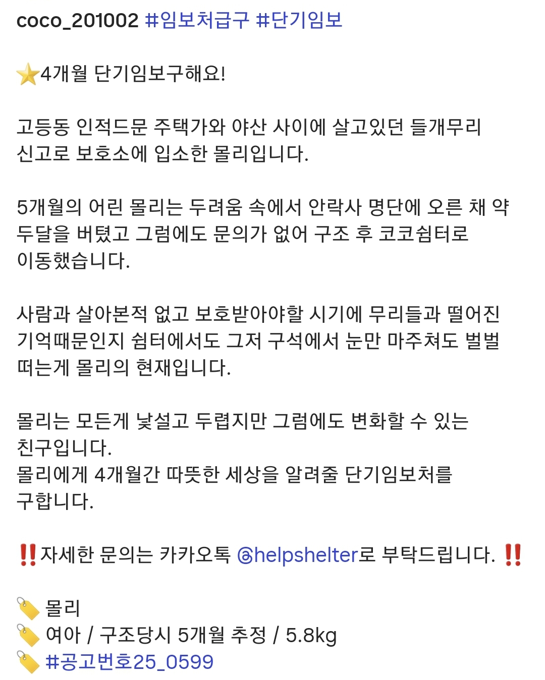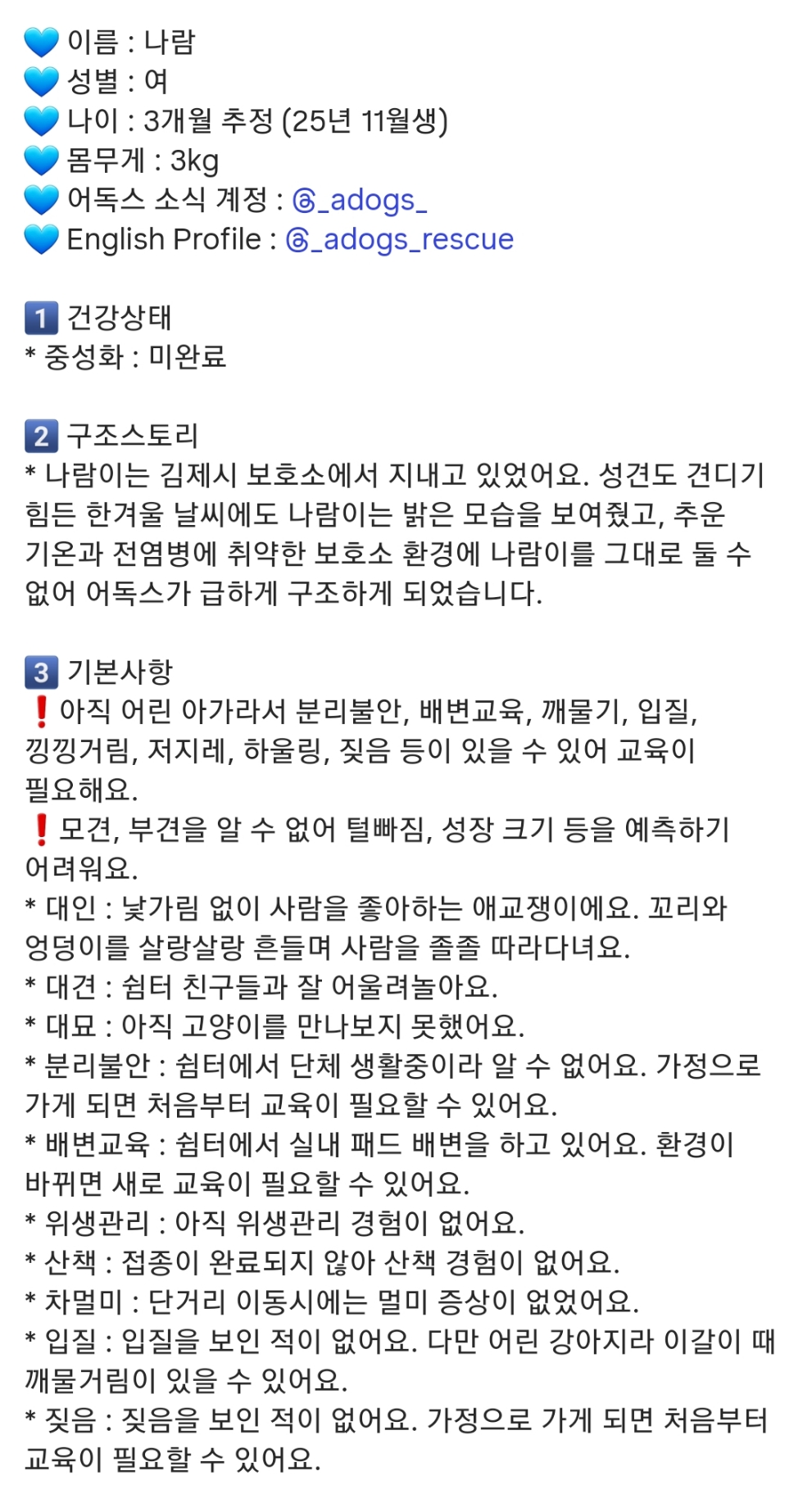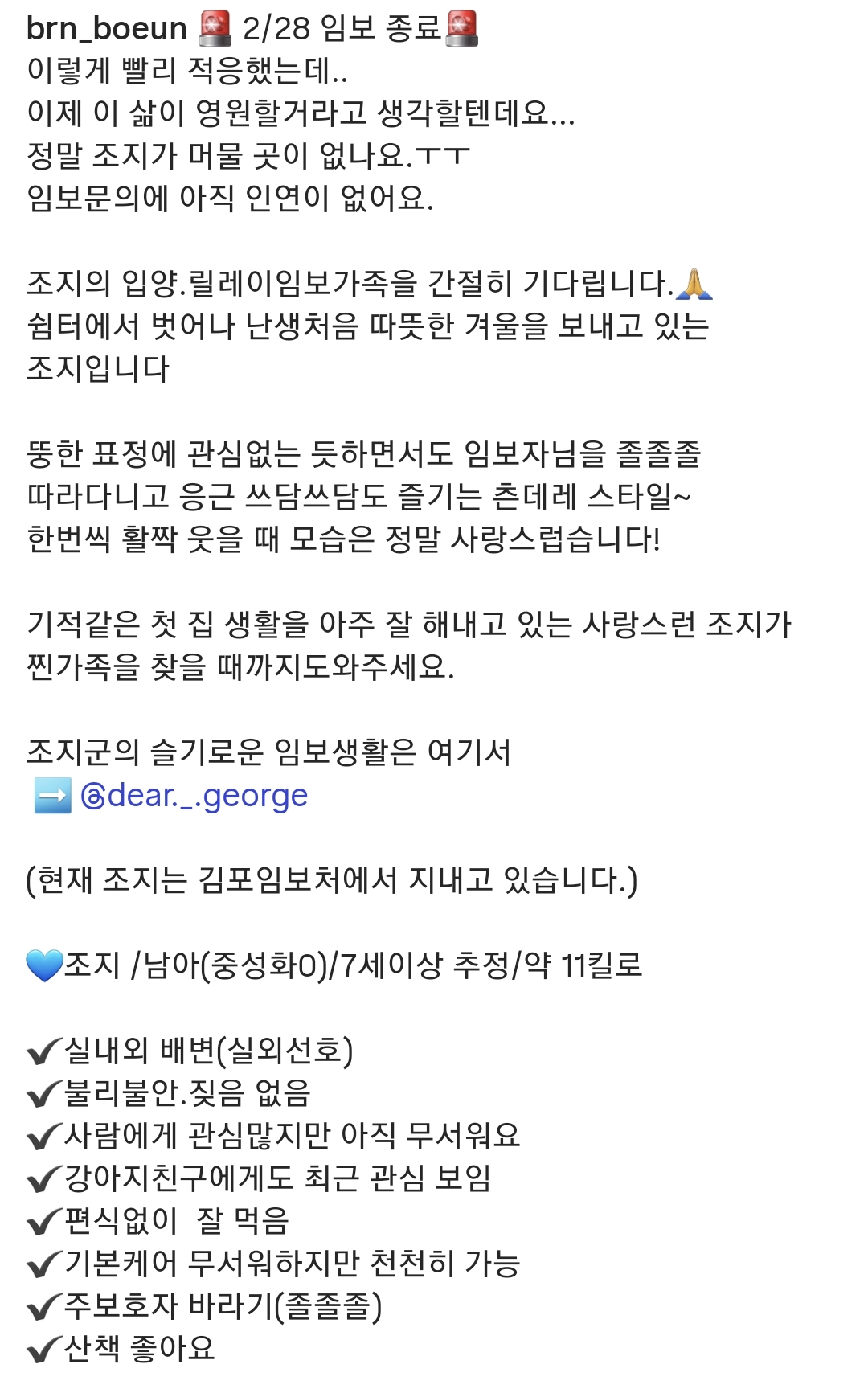 작성자깔리 작성시간 26.02.20 이런 보호소에서 임보 후 입양하려면 비용 같은 거 내야해??