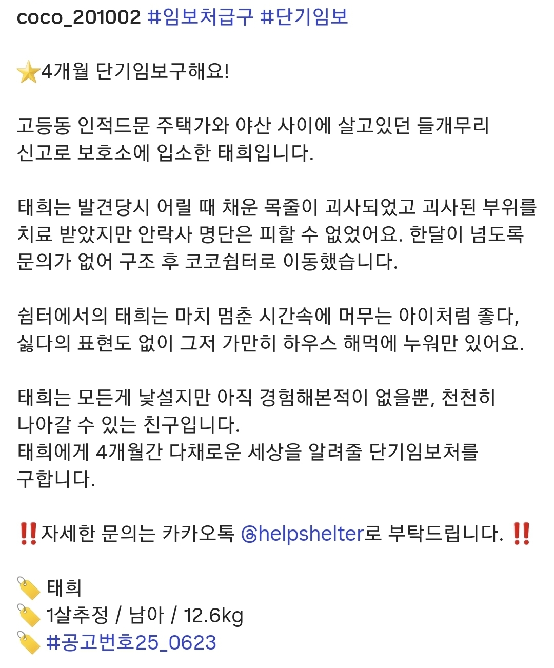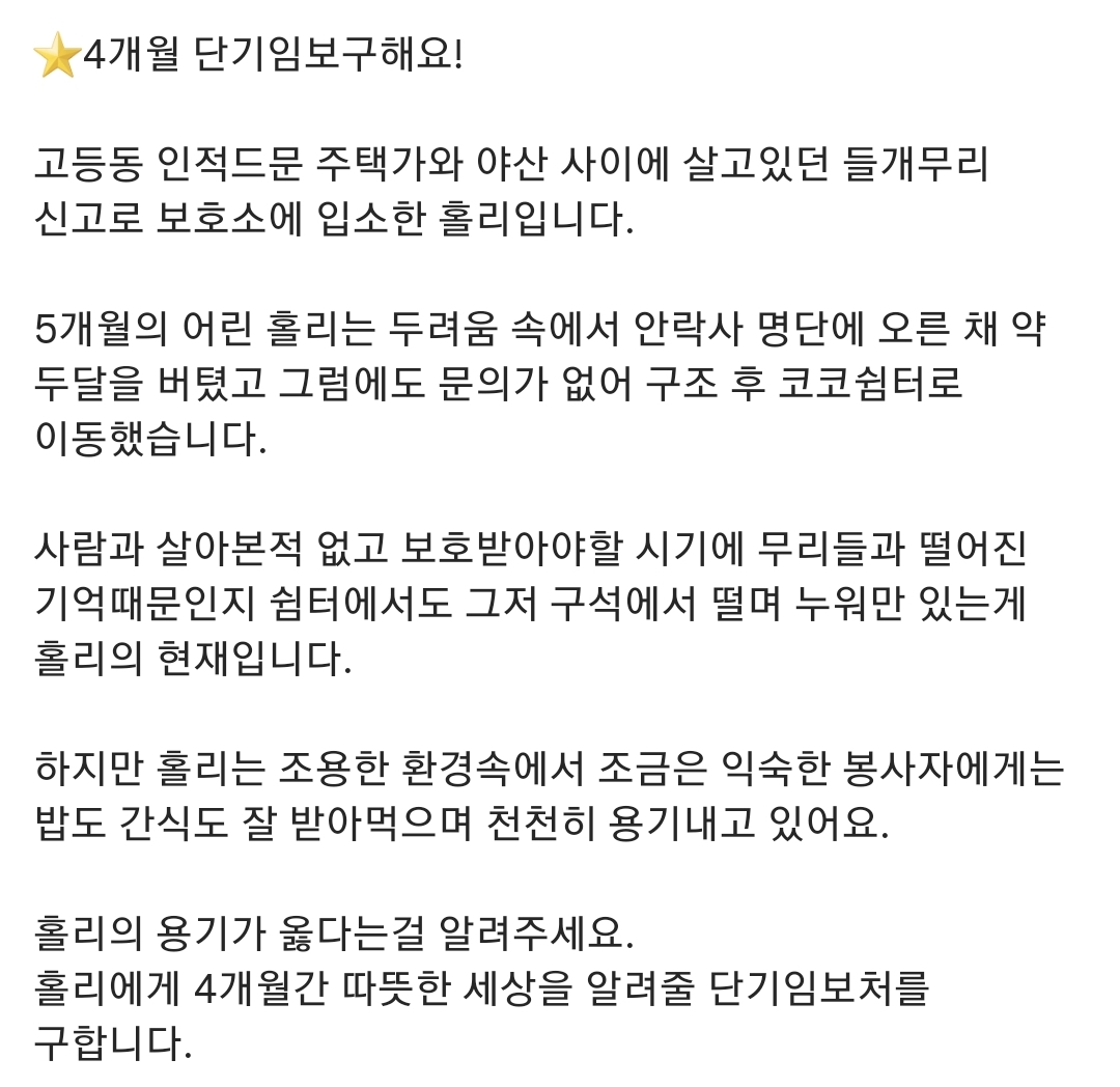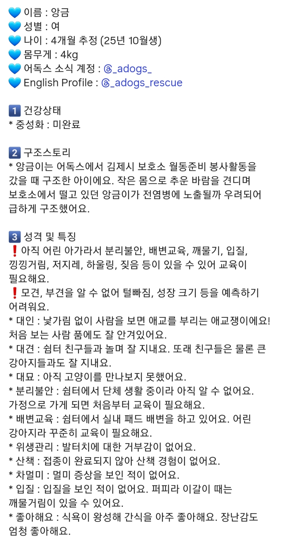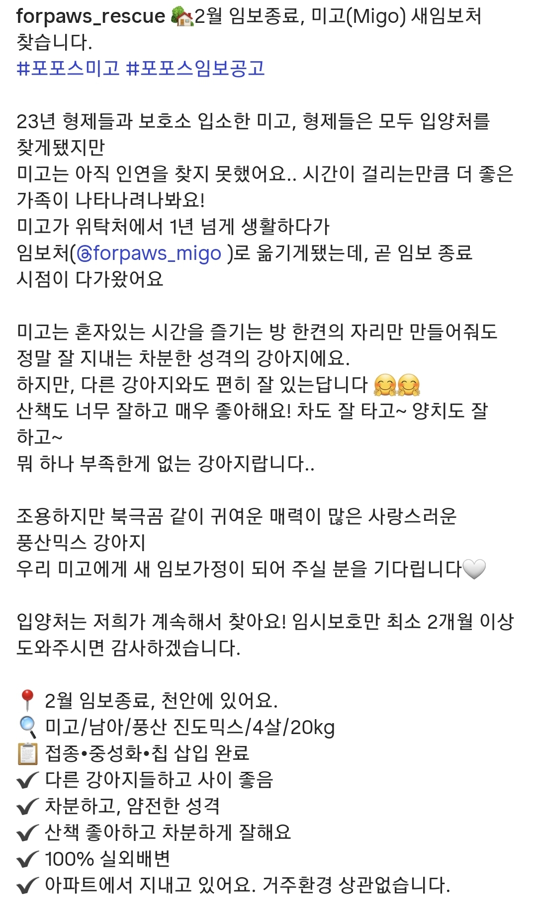 작성자깔리 작성시간 26.02.20 이런 보호소에서 임보 후 입양하려면 비용 같은 거 내야해??