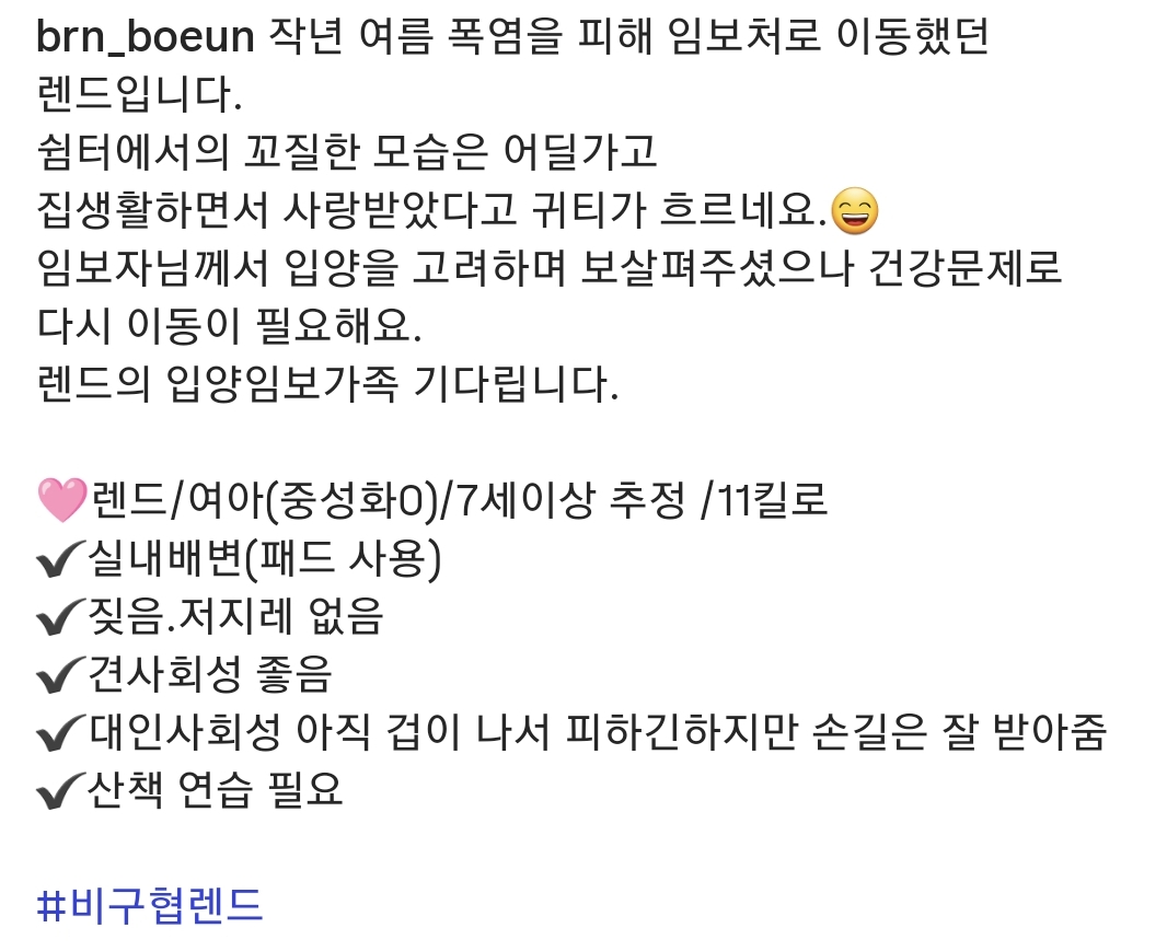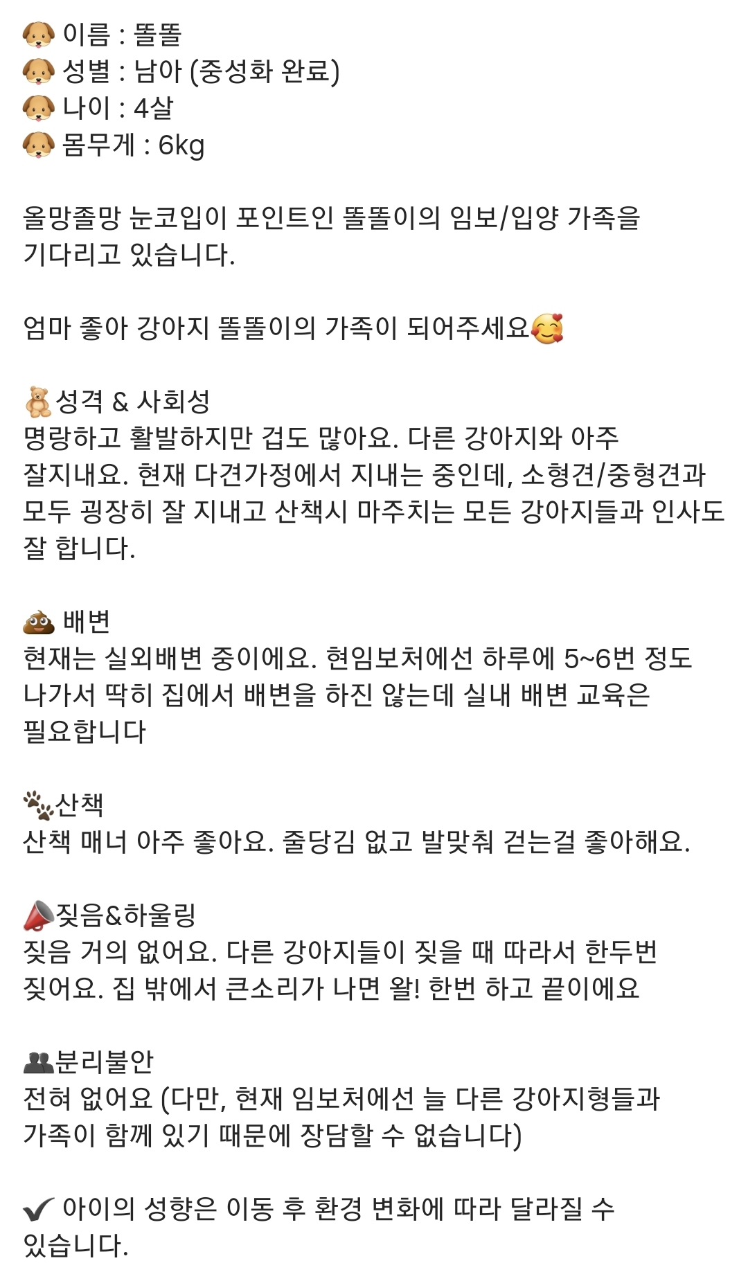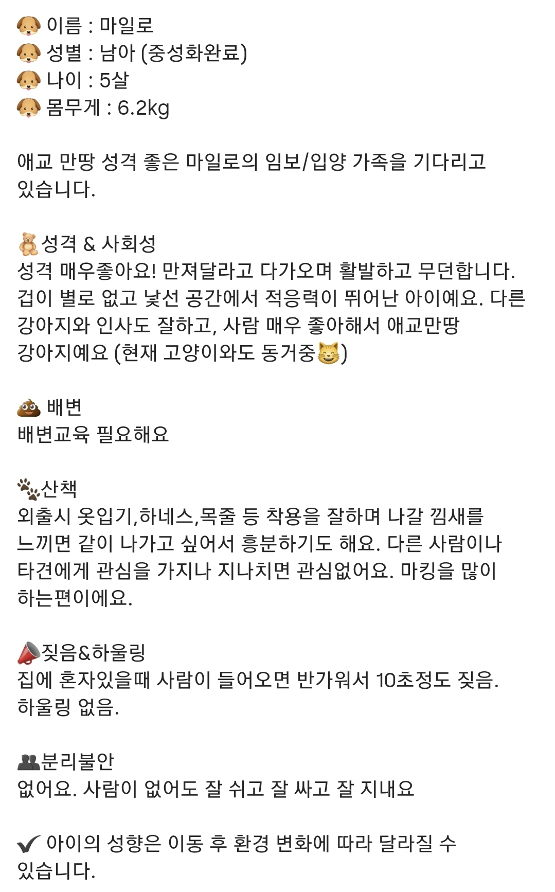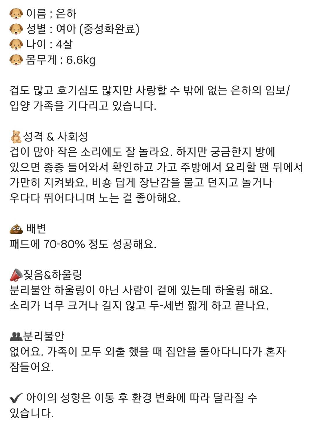 잠깐이라도 집생활 하면서 성향 파악된 유기견이
