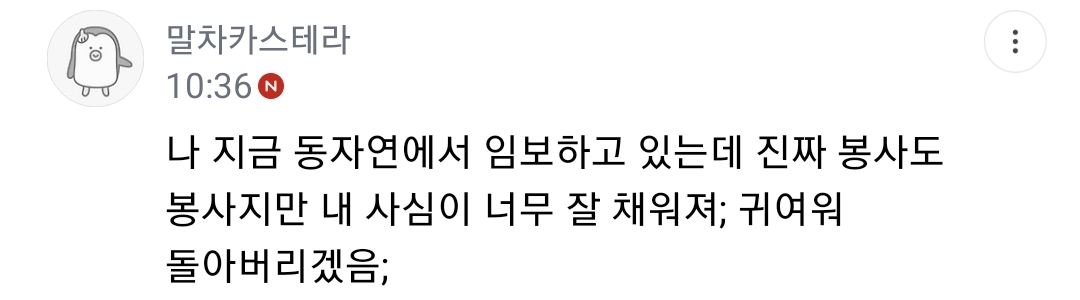 답댓글 작성자오이맛초콜릿 작성자 본인 여부 작성자 작성시간 26.02.21 와 여시!!! 행동으로 옮기다니 진짜 멋지다👏👏 애기도 넘 귀여워ㅜㅜㅜ 집밥 먹고 푹 쉴 수 있겠다! 임보 기간 동안 가족 만나자!! 천사 여시😇 고마워!! 감동ㅠㅠ