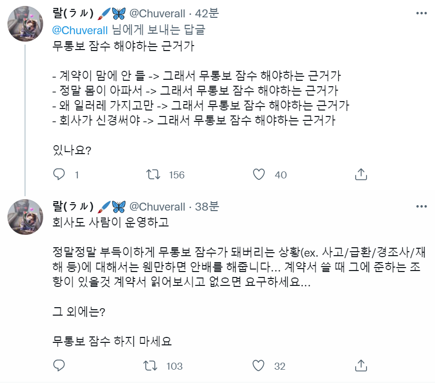 전화도 메일도 아무것도 안받아 계약서 들이밀어도 답도 없어 근데 트위터 올리면 답이 와