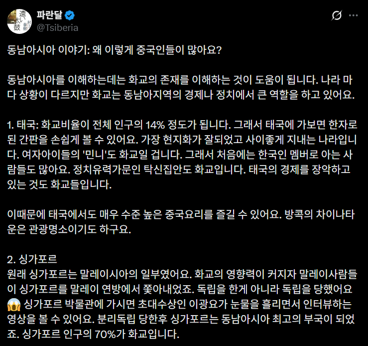 우리나라는 화교가 정복하지 못한 나라라고 하던데 맞나? 나도 그렇게 생각했는데 댓보니까 아니라는 의견도 있어서 궁금.. -