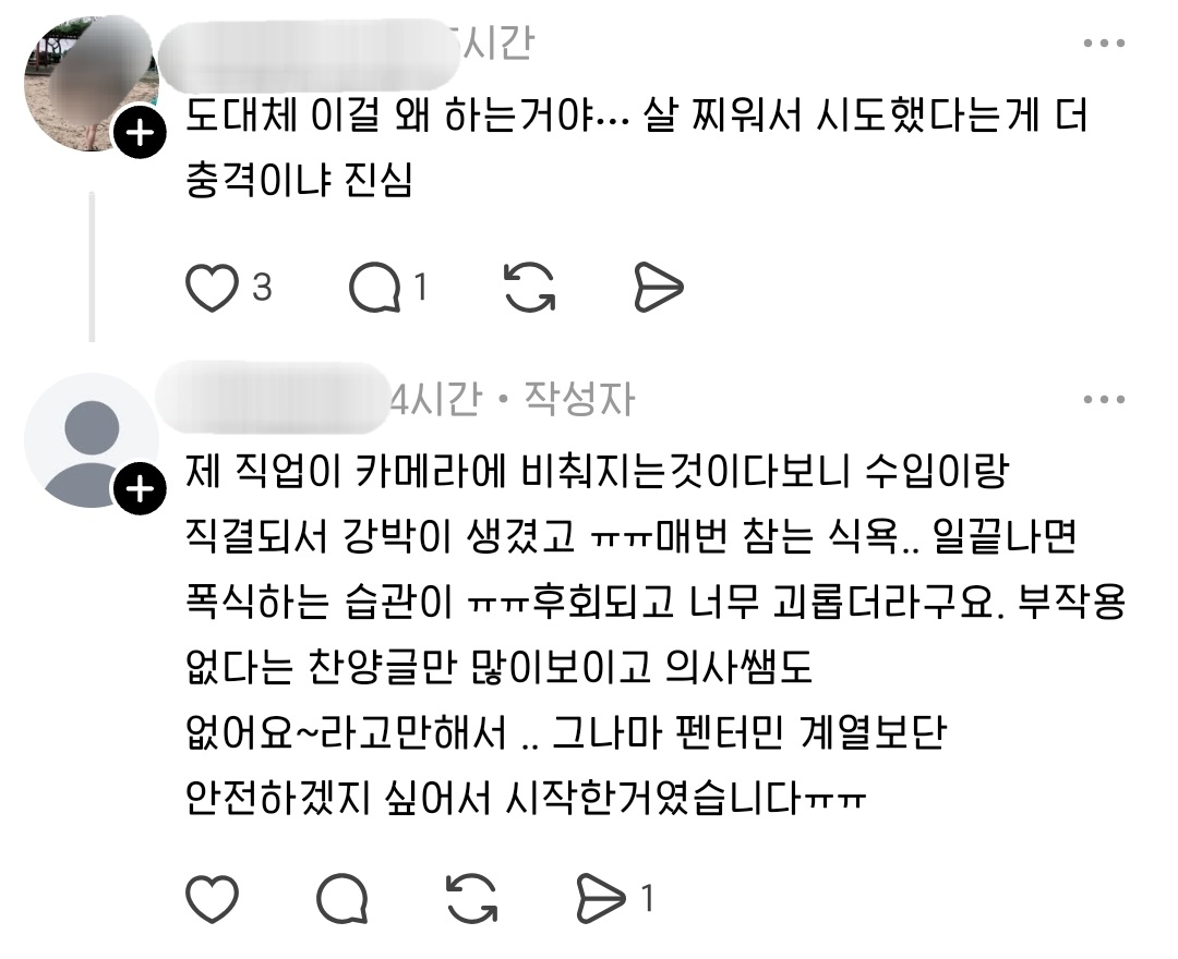 [흥미돋]171cm46kg 말라녀의 마운자로 후기 작성자뽀도도|작성시간26.02.19|조회수147,286 목록 댓글 332 글자크기 작게가 글자크기 크게가 출처: 여성시대 뽀도도오늘 본 글 중에 젤 충격적임 ⋯ 다음검색 현재 게시글 추가 기능 열기 북마크 공유하기 신고 센터로 신고 댓글 댓글 332 댓글쓰기 답글쓰기 댓글 리스트 작성자창백 | 작성시간 26.02.27 마루타; 아 하지마진나 작성자나는문어문어문어 | 작성시간 26.02.27 …????? 왜이래 진짜 작성자하이렁렁 | 작성시간 26.02.28 와.. 의사 개쓰레기다 진짜 작성자둔둔고양이 | 작성시간 26.02.28 개오바임 작성자INTJ극혐함말걸지마셈 | 작성시간 26.03.20 평소에도 나비약 먹을정도로 외모정병있나보다 에구 댓글 전체보기