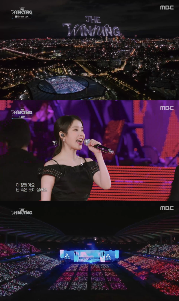 이날 방송에서는 상암 밤하늘을 화려하게 수놓은 드론쇼와 다채로운 무대 연출이 시청자들의 눈길을 사로잡았다. 아이유는 'The Winning'의 타이틀곡인 '홀씨'를 비롯해 청량한 에너지를 전하는 '어푸', 감동적인 멜로디의 'Celebrity' 등 수많은 히트곡을 쏟아냈다. 공연의 피날레는 이번 투어의 주제인 'Love wins all'이 장식하며 아이유가 전하는 '사랑의 힘이 결국 모든 것을 이겨낼 것'이라는 메시지를 안방 1열까지 고스란히 전달했다.