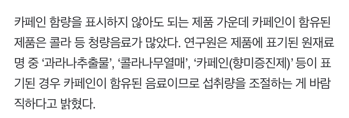 사실 콜라와 같은 탄산음료들에 카페인은 흔히들 들어있음