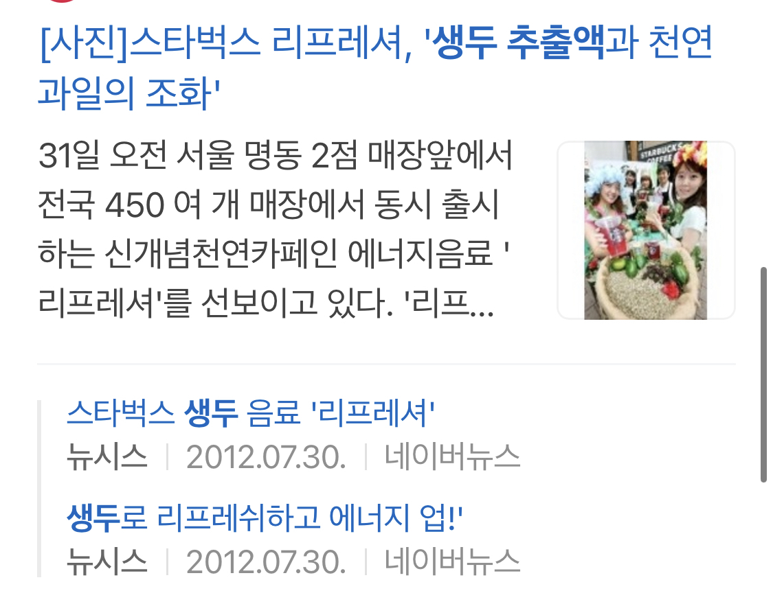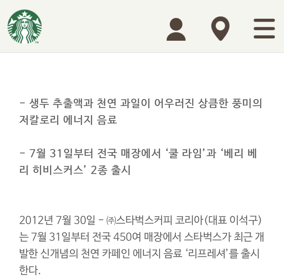 태초(2012년)에 에너지음료 스타벅스 리프레셔 2종이 국내 출시되었으니....