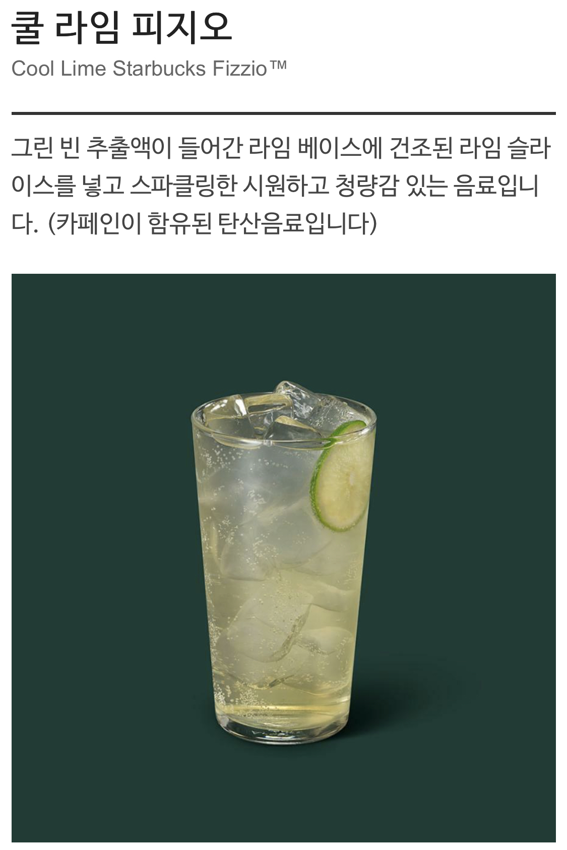 비주얼만 봐서는 카페인의 카자도 떠오르지 않게 생긴 스타벅스 쿨라임 피지오