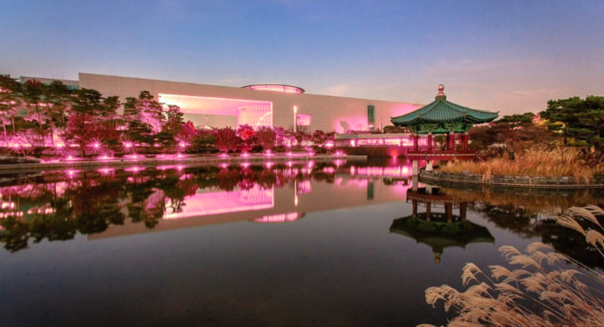 블핑색 조명으로 깔린 국중박 들어가서