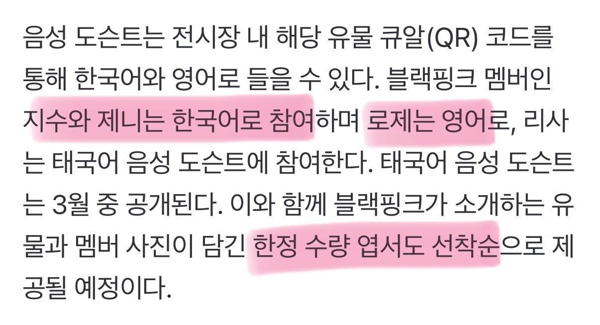 블핑 목소리로 대표 유물 해석 들으면서 역사 공부하고 엽서도 받은 다음에