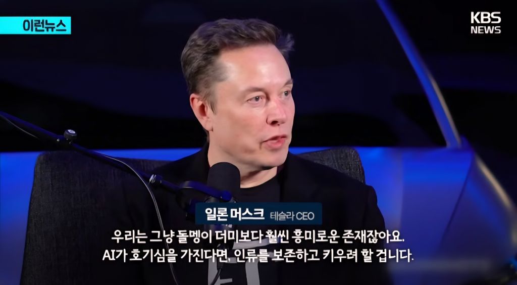 일론은 ai한테 호기심을 심어줘야한다 그래야 인류를 보존하고 키운다(?) 또 ai에 모성 본능을 프로그래밍해야한다 그래야 지능이 높은 존재가 지능이 낮은 존재의 필요에 복종한다