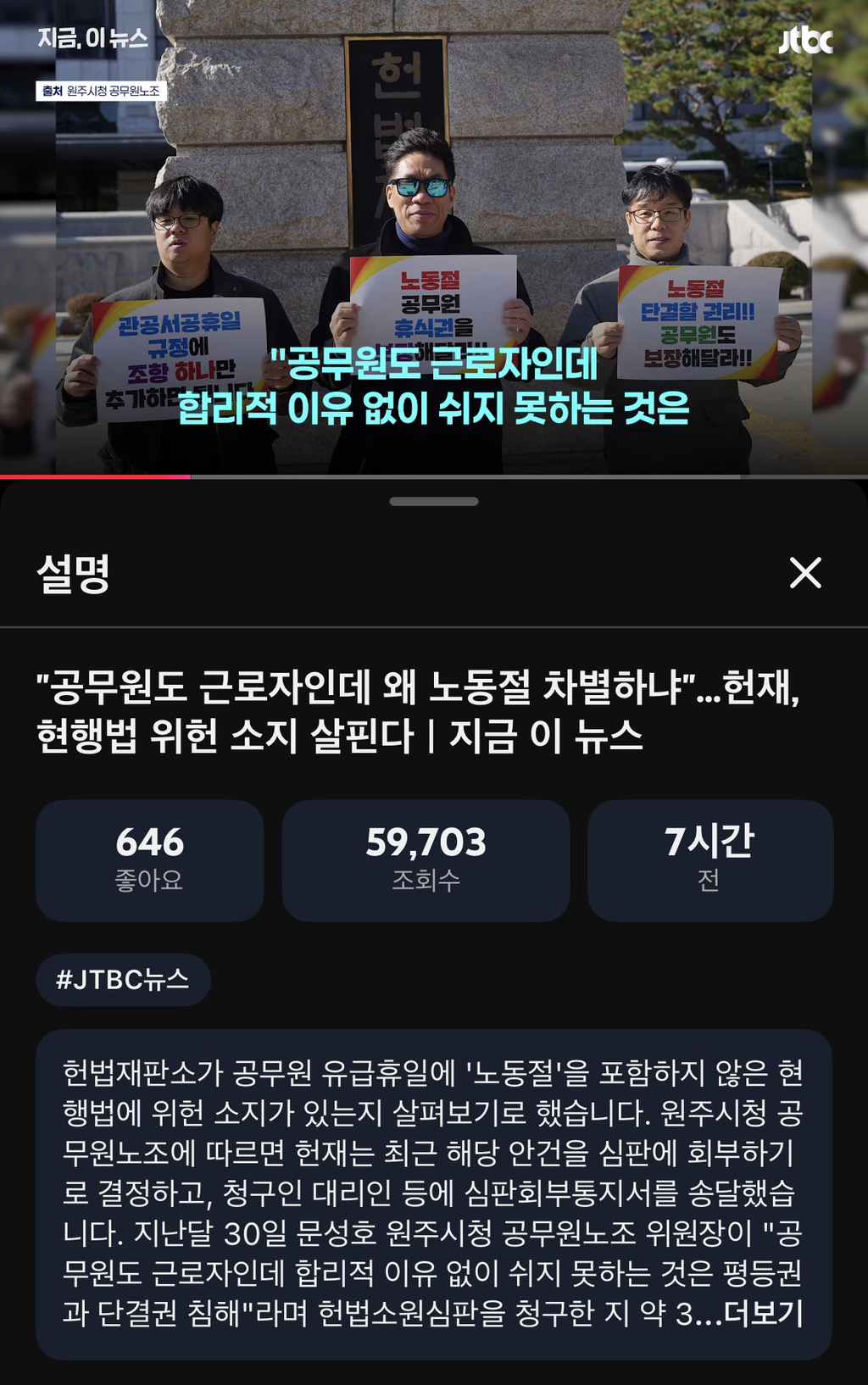 [여시뉴스데스크]“공무원도 근로자인데 왜 노동절 차별하냐”… 헌재 현행법 위헌 소지 살핀다 작성자로또또로또또|작성시간26.02.19|조회수13,235 목록 댓글 40 글자크기 작게가 글자크기 크게가 출처: https://youtu.be/zriojdFh8KA?si=IH5wmPQnlGMZsIrf공무원도 같은 국민이고 근로자다 같이 좀 쉬었으면.. 다음검색 현재 게시글 추가 기능 열기 북마크 공유하기 신고 센터로 신고 댓글 댓글 40 댓글쓰기 답글쓰기 댓글 리스트 작성자단스 | 작성시간 26.02.19 제발........ 작성자베풀어주시궜어요 | 작성시간 26.02.19 마참내! 작성자폭식모드on | 작성시간 26.02.19 좀 해줘라 작성자오소리오솟 | 작성시간 26.02.19 씨발좀바꿔 작성자신라면 | 작성시간 26.02.20 공무원한테 진짜 너무하긴함... 댓글 전체보기