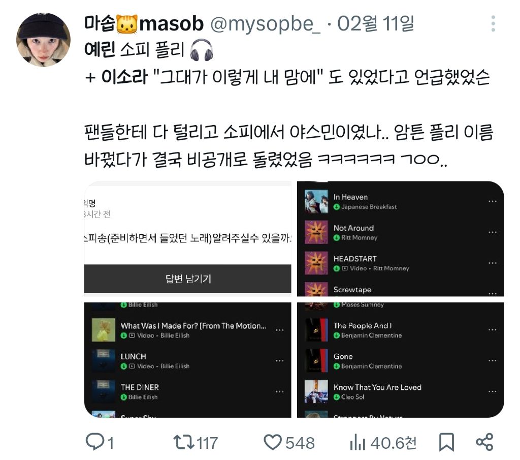 스포티파이에 소피 몰입용 플리를 만들어놨었나봐