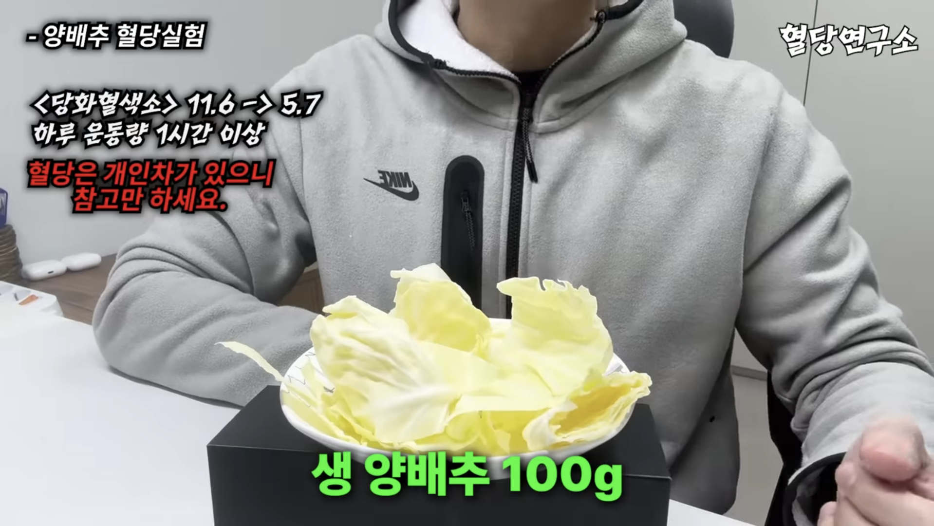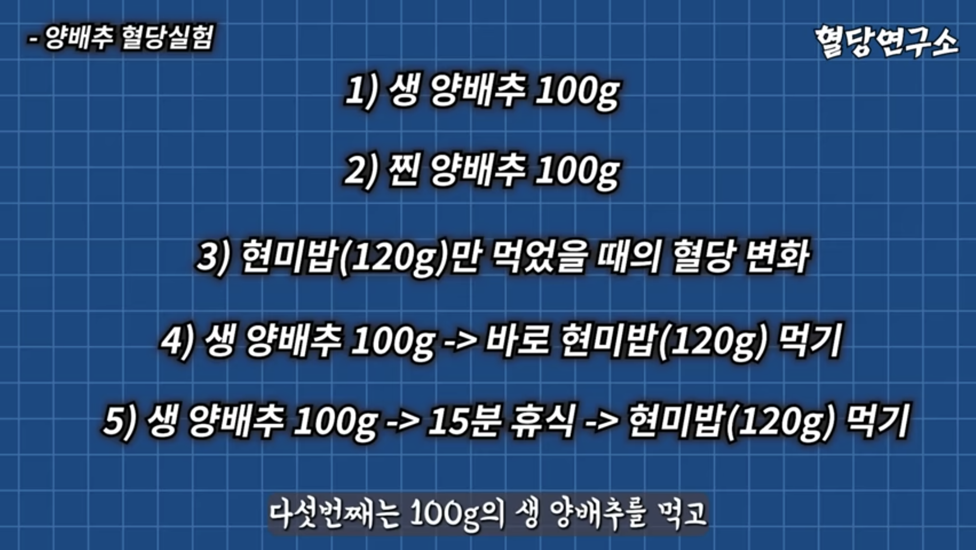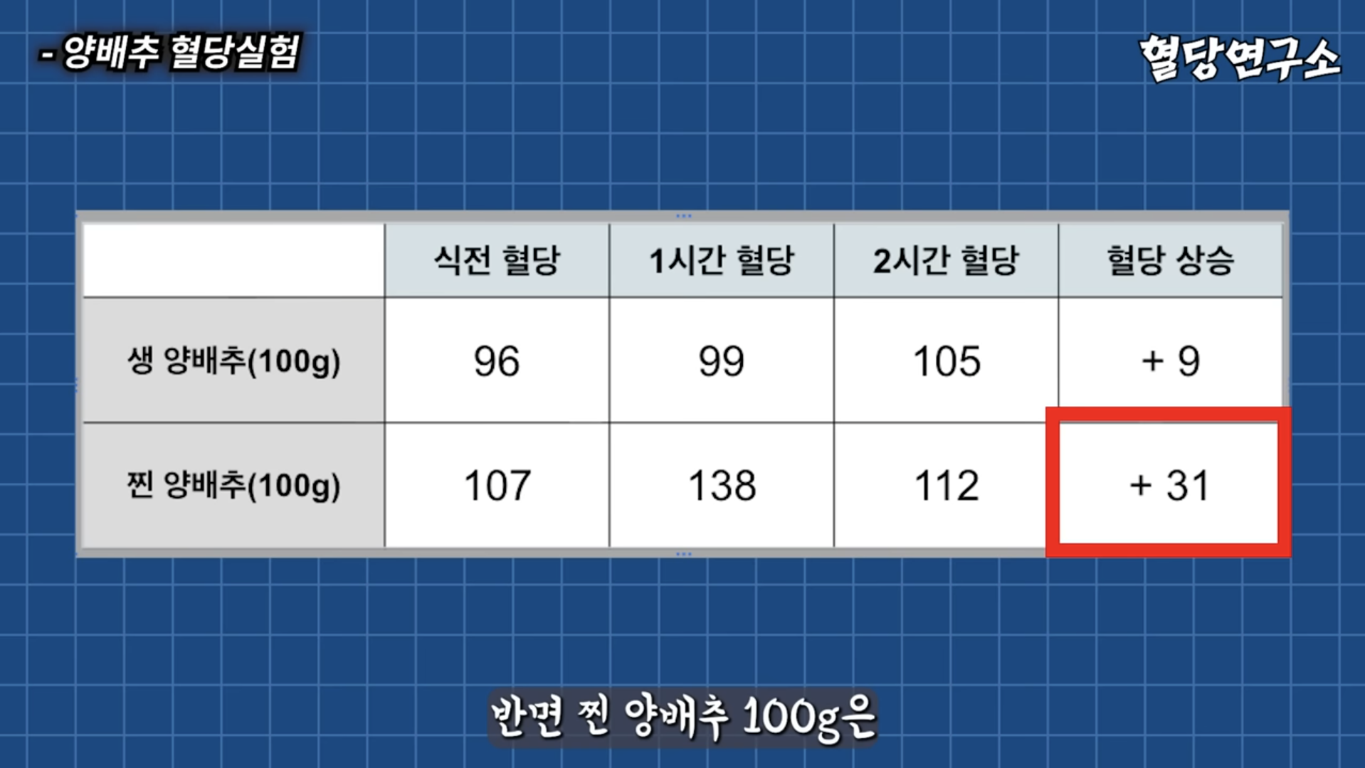 먼저 생 양배추와 찐 양배추만 먹었을 때 혈당 변화
