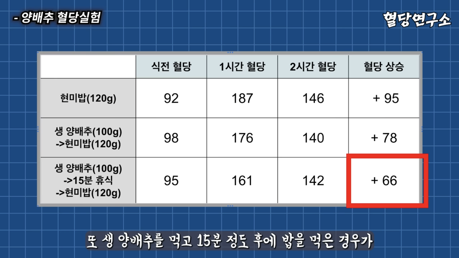 생양배추 먹고 15분 지나고 현미밥 먹었을 때 +66