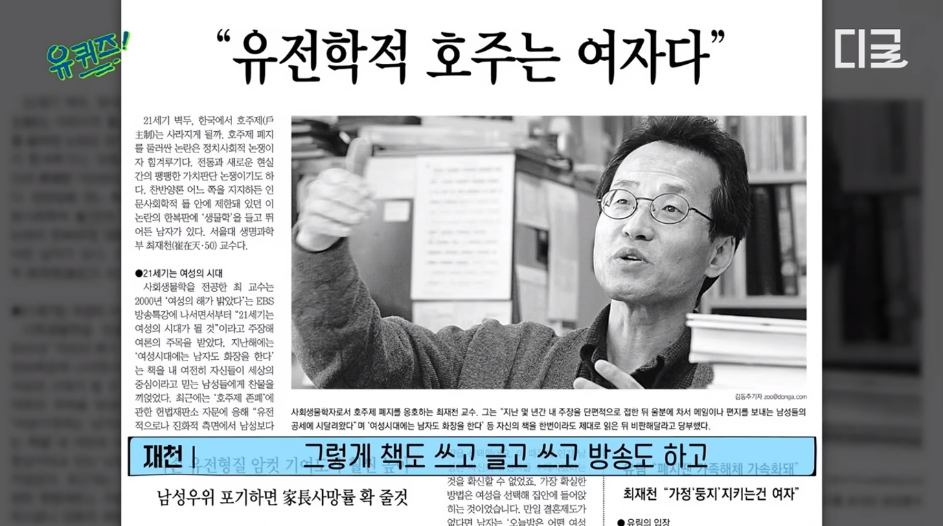 [스크랩] [흥미돋][유퀴즈] 말 한마디로 항의전화 100통씩 받은 하버드 출신 교수.jpg 작성자두쫀쿠먹어봄|작성시간26.02.19|조회수21,381 목록 댓글 65 글자크기 작게가 글자크기 크게가 출처: 여성시대 드렁드렁 "2005년 호주제 폐지" 생태학자 최재천 https://youtu.be/Ftr5cZYvu9o?si=OvHx4TyhWe0Ue5HN 다음검색 스크랩 원문 : *여성시대* 차분한 20대들의 알흠다운 공간 현재 게시글 추가 기능 열기 북마크 공유하기 신고 센터로 신고 댓글 댓글 65 댓글쓰기 답글쓰기 댓글 리스트 작성자RAPHA | 작성시간 26.02.20 진짜 멋있다 감사합니다 작성자짱이되어야지 | 작성시간 26.02.20 감사합니다 ㅠㅠㅠㅠ 작성자지난주말 | 작성시간 26.02.20 맞는말을 했는데 욕설전화하고 진짜 표독스럽다 작성자냉동망두 | 작성시간 26.02.20 팩트를 말했는데 사회운동가가 되어버린 작성자수파수파수파 | 작성시간 26.02.20 개쩐다 ㄷㄷ 댓글 전체보기