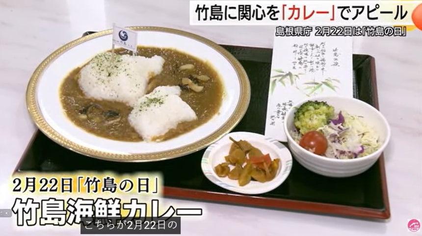 일본 요미우리신문 등에 따르면 시마네현은 오는 22일 자신들이 2005년 제정한 '다케시마의 날'을 앞두고, 현청 지하 식당에서 19일과 20일 이틀간 특별 메뉴 '다케시마 해산물 카레'를 선보인다. 22일에는 시마네현청 주최로 제21회 '다케시마의 날' 기념식도 열린다.